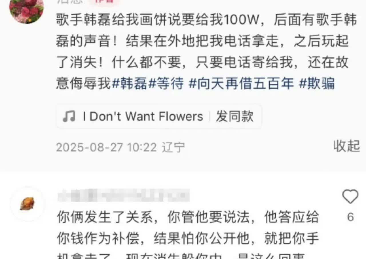 造谣韩磊出轨当事人发长文道歉,称自己出身农民没文化无力对抗。 近日,一女子发文