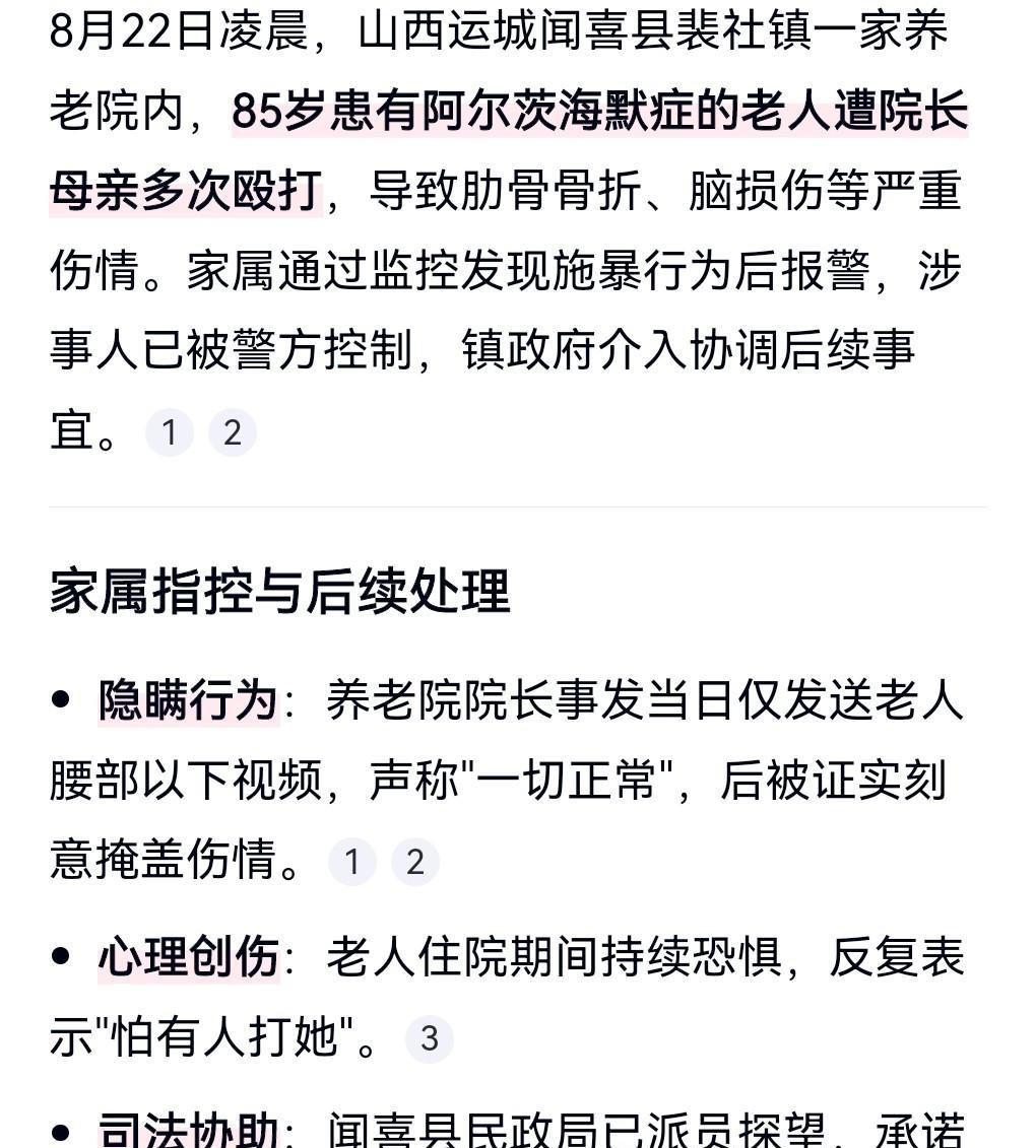 实在是太令人发指了。 竟然殴打一个老年痴呆的人。 近日,山西运城一老人在养老院遭