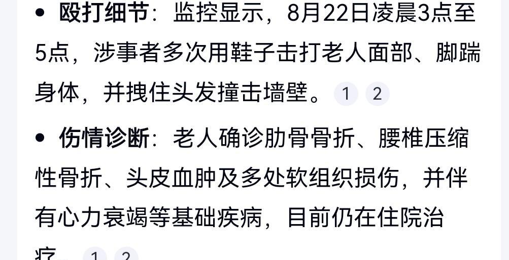 实在是太令人发指了。 竟然殴打一个老年痴呆的人。 近日,山西运城一老人在养老院遭殴打。 被打的是相当的严重。 这真的挺丧心病狂的。 欺负这个老人是老年痴呆的患者,无法告知家属。 这真是让人防不胜防啊,打人者还是院长的母亲。 很让人瑟瑟发抖啊。 一定要严惩打人者。 #山西运城一老人在养老院遭殴打#