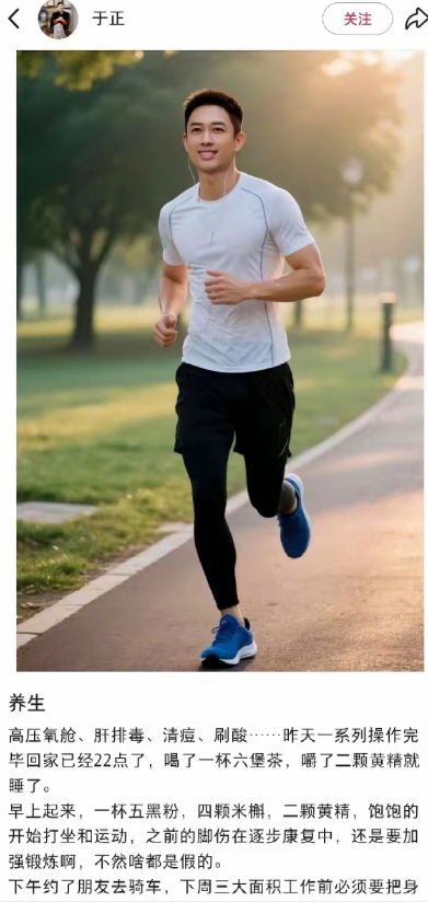 但他个人对颜值有执念,除了锻炼、减肥、养生之外,还特别喜欢发美颜照。 那些照片几乎都是花样美少年的风格,虽然有他本人的影子,但和真人差着一个马里亚纳海沟。