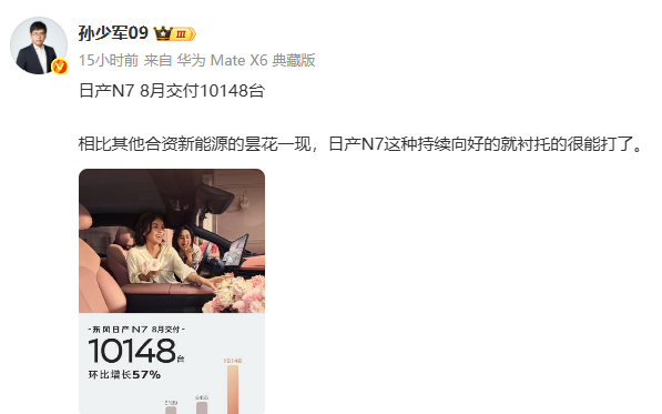 孙少军: 上个月日产N7 ,交付10148台!