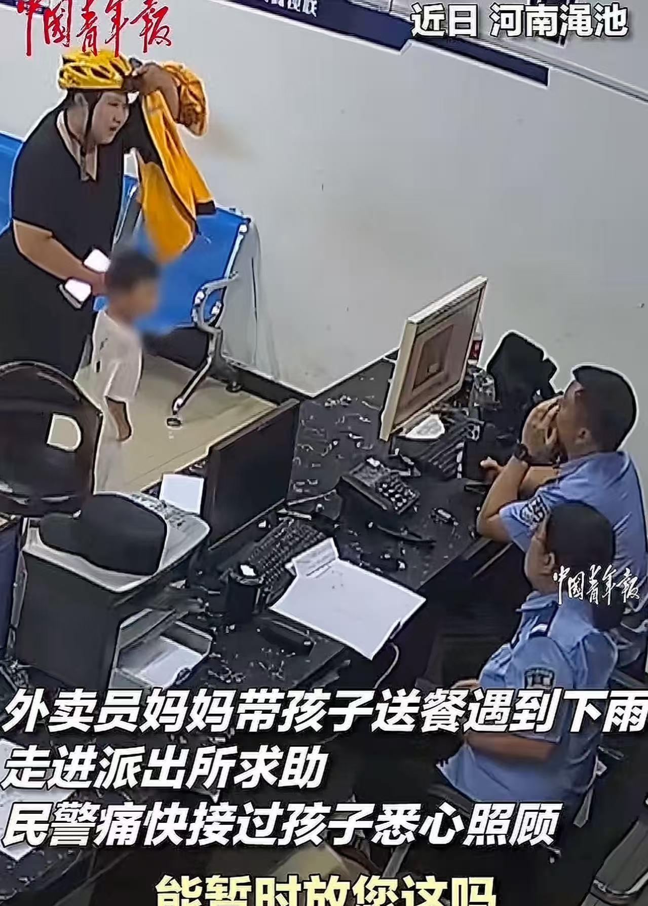“这个派出所火到中国青年报!”河南绳池,外卖员妈妈带孩子送餐途中遇到大暴雨,走进派出所问能不能先把孩子寄托在这里?而接下来民警们的做法,让外卖员妈妈想哭!网友:真正体现了“有困难找警察”! 河南渑池一位宝妈为了生活,想要找一份工作挣钱养孩子。 而她家里没有其他亲人能够长期帮忙,托付给邻居也不安心。 但传统上班需要固定时间和地点,意味着孩子没人照料,这让她陷入两难。 经过一番权衡,她最终选择了外卖员这份工作。 外卖工作虽然辛苦,但有明显优势,时间灵活,可以自己安排配送的时间段,工作地点不受限制,她既能挣钱养家,又能随时照看孩子。 更关键的是,女子可以把孩子带在身边,让孩子既安全又有人陪伴。 每天早晨,她会先给孩子准备好早餐和必需品,然后把孩子放在带有安全座椅的电动车上,出发送外卖。 沿途,她小心翼翼地确保孩子安全,同时接单送餐,虽然忙碌但是她很知足。 这天,女子照例带着孩子出门送外卖。 刚出门没多久,开始下雨了。 孩子的小衣服瞬间湿透,头发也被雨水打湿贴在脸颊上,看的女子心里一紧,怕孩子受凉生病,可手上还有几份外卖订单堆着,若耽搁太久,就会被顾客投诉超时,影响评分和收入。 女子环顾四周,视线落在不远处的派出所上,心里一转念,大家不都说有困难找警察吗?她决定碰碰运气。 她快速抱起孩子,打着几步小跑走进派出所。 走进派出所,女子略显局促地笑着说道:“您好,外面下雨了,我带着孩子实在不方便,能不能暂时把孩子放在您这儿?我把外卖送到地方马上就回来!” 女子的声音里带着焦急和无奈,唯恐派出所的工作人员拒绝她。 值班民警一听,立刻放下手头的工作,面带笑容地招手示意:“没问题,放心吧,你快去送外卖,孩子我们会照顾好。” 女子心里一暖,把孩子轻轻交给民警,低声道谢后,头发湿漉漉地冲出派出所,继续奔波在送外卖的路上。 而民警则在派出所里耐心陪伴着孩子,安抚小家伙不要害怕。 这里不再是严肃的办公室,而变成了一个临时的“育儿中心”。 女警官见孩子全身湿漉漉,立刻弯下腰,把自己备用的干爽衣服从储物柜里拿出来。 动作温柔而利落,她蹲下身,一边逗孩子注意力一边帮他换上干净的衣服,让小家伙感受到一丝温暖。 孩子的手脚在干衣服里舒服地伸展开,表情渐渐放松。 另一边,男警官默默接过孩子脱下的湿衣服,小心地摆在空调出风口旁,调好风向和温度,衣物很快被暖风吹干。 孩子很乖,并没有因为妈妈离开而哭闹。 女警看孩子有点困了,马上就要睡着了,但是派出所没有床,她将孩子轻轻抱起,揽在怀里。 她的每一个动作,每一句安慰,都在无声地传递着安全感和关怀,让这个小小的身影在陌生环境中,感受到家一般的温暖。 当母亲送完外卖赶回来,看到孩子在警官怀里安睡的画面,她哽咽着道谢,那份感动是装不出来的。 这份温暖并没有停留在派出所里,它通过网络,迅速辐射到了全国。 很多有相似经历的单亲妈妈说,她们“看哭了”,因为太懂那种孤立无援的感受。 事件戳中了无数人在生活重压下的无奈和脆弱,这才是它能引发巨大共鸣的根本原因。 《中国青年报》等媒体的报道,让人们不再只把“英雄”和惊天动地的大事联系在一起,平凡岗位上的善良,同样可以是一道照亮别人的光。 那个派出所,在那一刻成了无数人心中的“守护天使”。