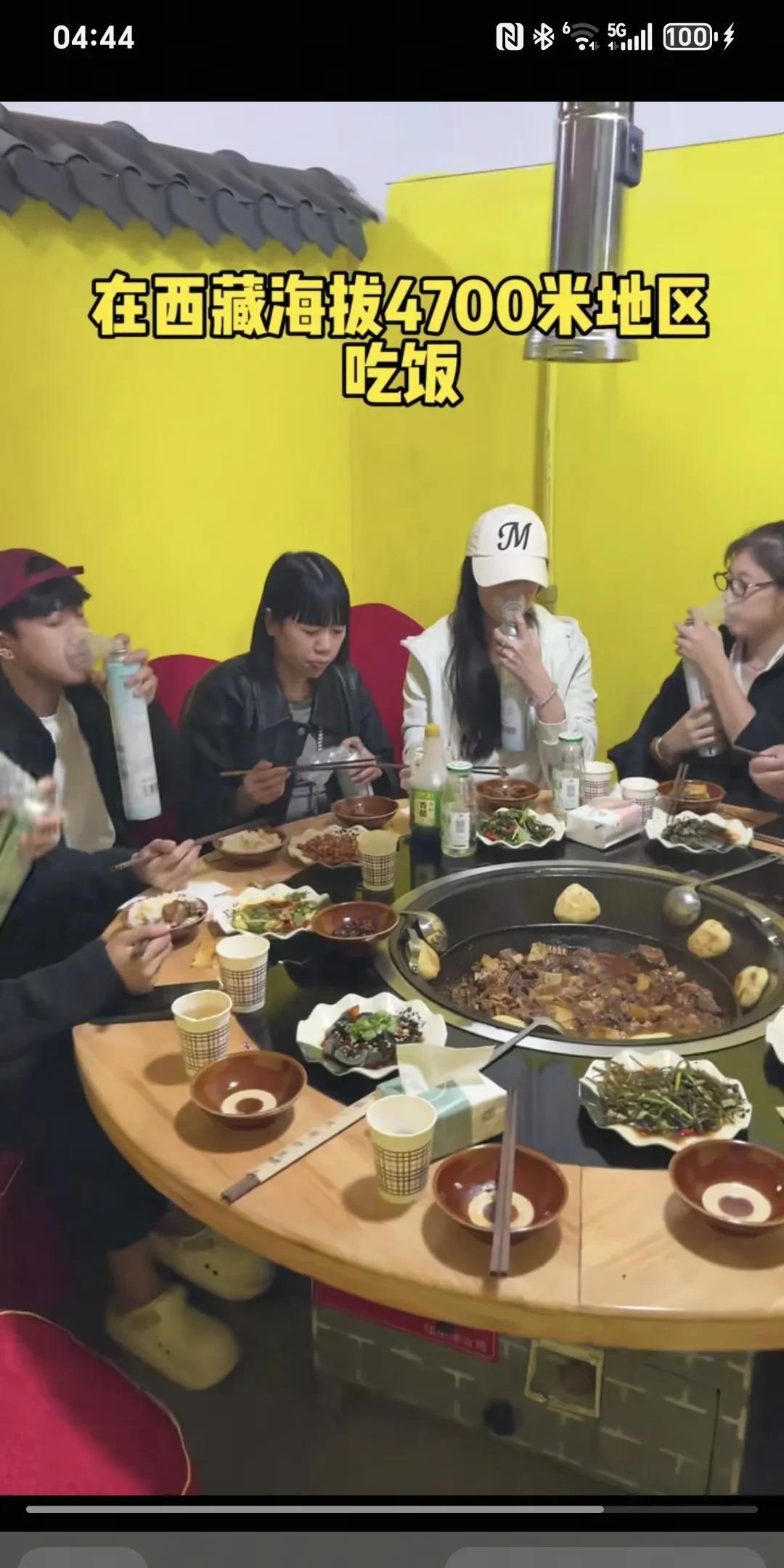 在西藏海技拔4700米地区吃饭~ 这吃个饭每人手中拿个氧气瓶,吃口饭,吸口氧气。