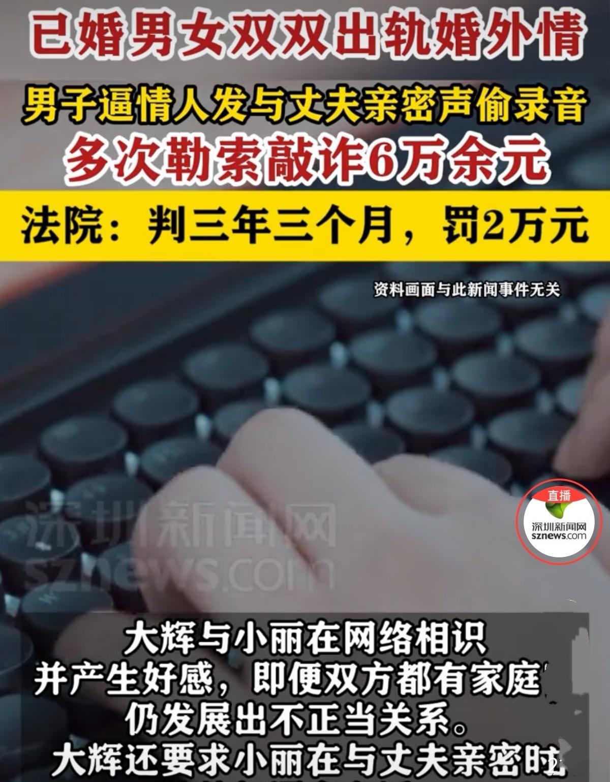 吉林长春,男子和女子各有家庭,结识网络,发展成情人,男子为求刺激,让女子把她和丈夫亲密时的声音,用微信语音通话发给他,女友照做,不料,男子瞒着女友偷偷录音,事后,男子3年间,陆续问女子敲诈6万多,女子最终报警,法院这样判了。 故事的男女主角,大辉和小丽(均为化名)都是有家室的人,两人原本只是网络上的陌生人,在一次偶然的聊天中,因为寂寞和虚荣,他们渐渐走近。 小丽原本的日子,在外人眼里几乎是让人艳羡的。 她嫁进的家庭氛围温和融洽,婆婆待她如亲生女儿般体贴,平常生活中,总会特意为她准备她爱吃的小菜。 她的丈夫更是许多人眼中的“模范老公”,对小丽百般包容,工资按月上交,从不藏私。 平日里,家务活也抢着干,哪怕是下班再晚,也会主动帮小丽洗碗、拖地,从不让她操心太多。 可是,幸福的外壳下,却渐渐滋生出小丽自己都未察觉的落差。 丈夫的性格虽然温厚,但木讷寡言,不懂浪漫。 久而久之,小丽觉得自己在这样的日子里缺少了情感的火花与激情。 时间久了,那种心底的空虚逐渐放大,变成了微妙的不满足和厌倦。 大辉和小丽从最初是暧昧的文字,再到深夜的电话,最后发展成了不堪的情人关系。 但大辉的欲望并不止于偷情的刺激,他逐渐露出控制与占有的心思,提出了一个极其荒唐的要求。 让小丽在和丈夫亲热时,用微信语音把声音传给他。 小丽当时心智被感情蒙蔽,本能觉得荒谬,却又怕失去这个所谓“特别的关系”,竟然鬼使神差地同意了。 她拿起手机,手心满是冷汗,心里惶恐不安,却还是照做了。 她哪里能想到,电话那头的大辉,并没有沉浸在所谓的“共享秘密”里,而是冷静、娴熟地按下了录音键。 那一刻起,一切都变了。 录音不再只是声音,而是一把悬在小丽头顶的利刃。 大辉露出了真面目,他不再假装温柔体贴,而是提出“借钱”的要求。 他威胁小丽,如果不答应,就把录音和两人肮脏的秘密一并发到她丈夫和亲友的手机里,让她身败名裂、家庭崩塌。 小丽瞬间如坠冰窟,她才意识到,自己从一开始就落入了一场早已布好的圈套,而所谓的激情与浪漫,不过是大辉编织的陷阱。 恐惧彻底控制住了小丽,她乖乖转了2万元,只求息事宁人。 事后,小丽不堪其扰,拉黑了大辉,以为噩梦就此结束。 但她只换来了一年的平静,一年后,大辉再次找上门,这次的威胁变本加厉。 这根最后的稻草,彻底压垮了小丽的心理防线,面对8.6万元的巨额索要,她精神恍惚地分两次转出了4.3万元。 在漫长的三年里,小丽像是被困在无形的牢笼里,每一次大辉的微信提示音响起,她的心就像被重锤敲打。 可一次退让,只换来下一次更狠的勒索。 金额从几千到上万,再到更频繁的催促,大辉的胃口越来越大。 小丽每次转账时,心里都清楚这是个无底洞,但她又找不到勇气说“不”。 日复一日,精神上的折磨让她夜夜失眠,常常对着丈夫和孩子露出牵强的笑容,背地里却独自崩溃。 终于,在一次几近崩溃的夜晚,她鼓起勇气选择报警。 警方介入后,事情的真相一步步被揭开,那段录音成了最核心的证据。 法庭上,冰冷的音频回放让大辉再无辩解的余地。 大辉的罪名被彻底坐实,他在长达三年的时间里持续威胁勒索,数额高达6.3万元,早已超过吉林地区对“数额巨大”的3万元入罪标准。 法院认定其手段恶劣,主观恶性深重,不仅严重侵害了受害人的人身自由与心理健康,还破坏了社会秩序。 最终,大辉被判处有期徒刑三年三个月,并处罚金两万元。 他提出上诉,但二审法院认为事实清楚、证据确凿,维持原判。 大辉的偷录行为,毫无疑问侵犯了他人隐私权。 但小丽的角色却相对复杂,她虽然在事件中让丈夫的隐私被间接暴露,却并未主动传播。 小丽为自己的一时糊涂,付出了沉重的代价,但她的报警,为自己争取到了一线解脱。 最后,这段录音也宣判了小丽自己婚姻的死刑,它成了她违背夫妻忠实义务的铁证。
