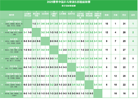 乒超联赛常规赛最终赛果确定,男团、女团四强确定,顺利晋级本赛季乒超联赛总决赛。