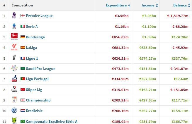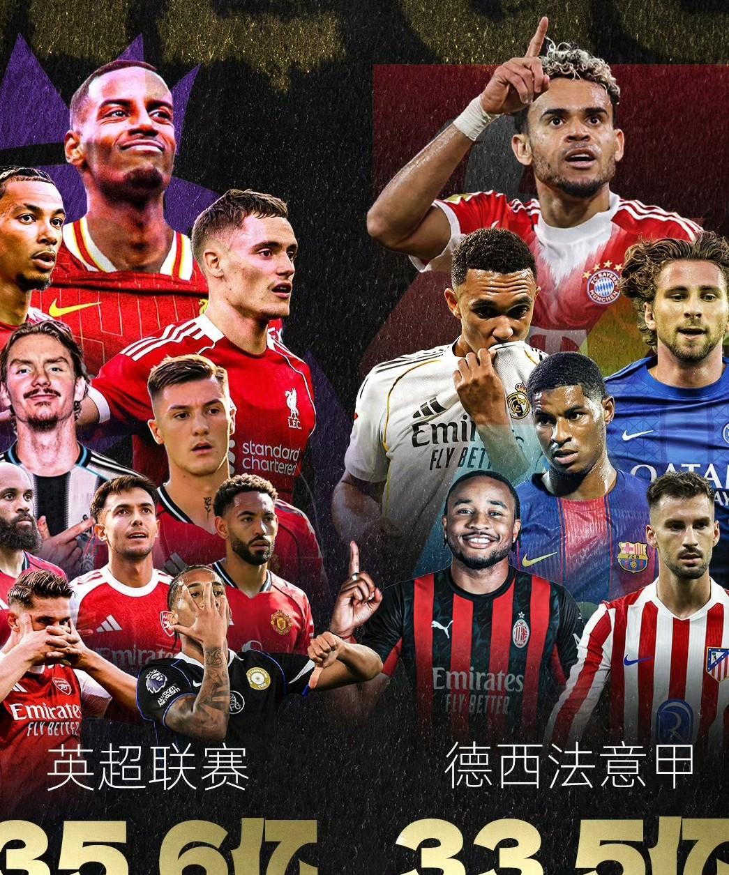为何英超夏窗总支出会超过意德西法四大联赛总支出之和? 2025年欧洲夏季转会窗口于9月1日关闭。 在2025年夏季转会窗口的投入方面,英超的确呈现出“一超多强”的态势。 最新数据显示,2025年英超联赛夏窗引援总支出高达35.6亿欧元,比意甲、德甲、西甲和法甲四大联赛支出总和的33.5亿欧元还要多。 为何英超能一枝独秀呢? 这背后是英超卓越的商业转播运营能力、俱乐部“以卖养买”的运营策略,以及英超吸引资金的能力和全球第一联赛的品牌效应共同作用结果。使得英超最有具有商业价值世界第一联赛。