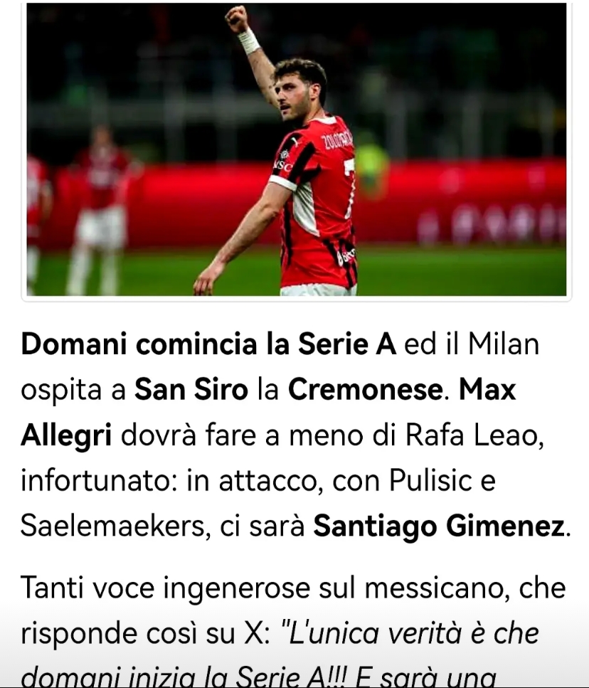 转会窗口关闭,米兰没有引进任何一个中锋,阿莱格里心心念念的弗拉霍维奇没来,接下来的至少半个赛季,阿莱格里只能用大西门尼斯冲锋陷阵了,大西门也需要在这半个赛季里面,用实际行动来为自己的3000多万身价证明。