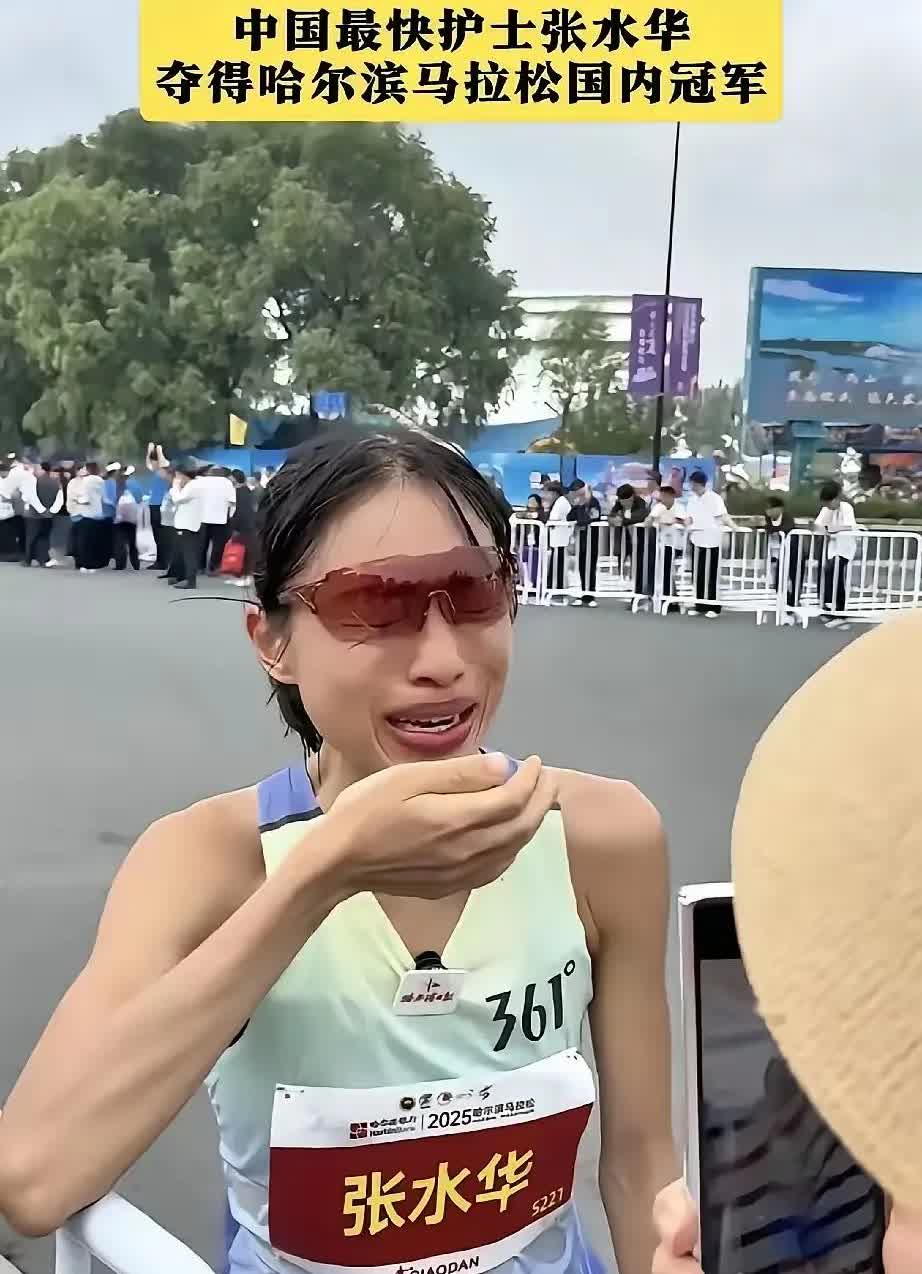 不得了,张水华护士确实不一般,单说今年,她在各省参加的马拉松比赛: 8.31哈尔滨,6.28河北,5.25黑龙江,5.5云南,4.20山东,4.28河北,4.18安徽,3.30江苏,3.22浙江,3.16浙江,3.9浙江…… 其中,哈尔滨的冠军奖金高达8万美元,单凭这次的收获就远远超过了护士的全年工资。 知足者常乐,张水华凭自己的天赋早己不缺钱,她完全可以潇洒的辞职专心做自己喜欢的运动,干嘛还要当着众人痛苦流泪呢?