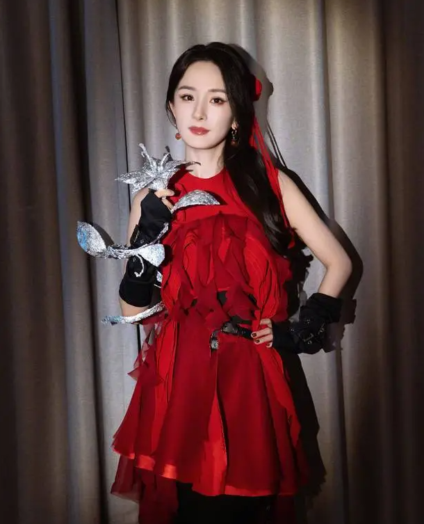 近日,杨幂的一组美照爆出,图中,杨幂身着红色裙子,头戴红玫瑰,搭配黑色手套,尽显飒爽。