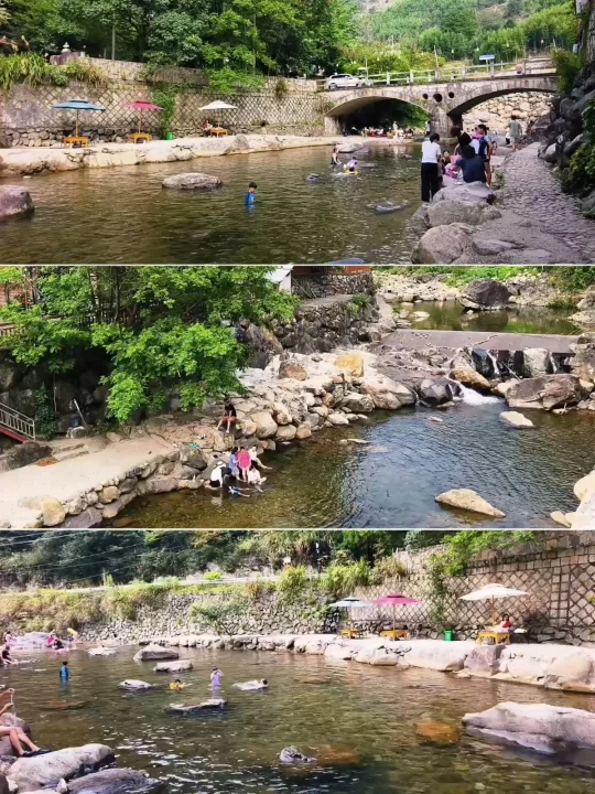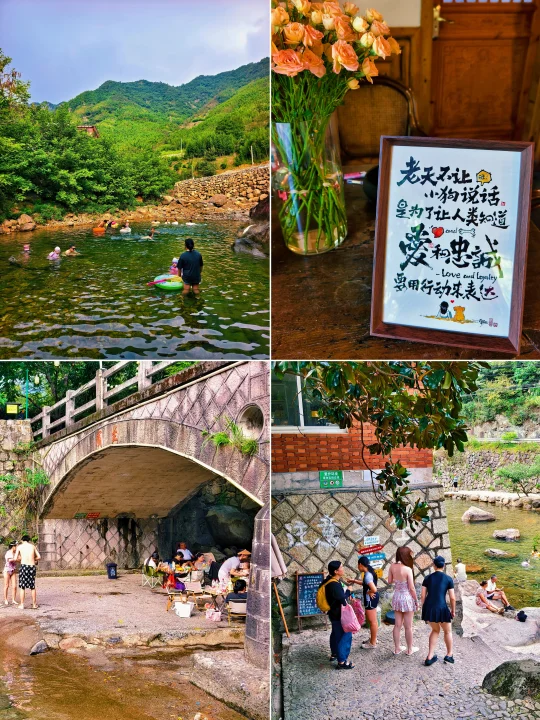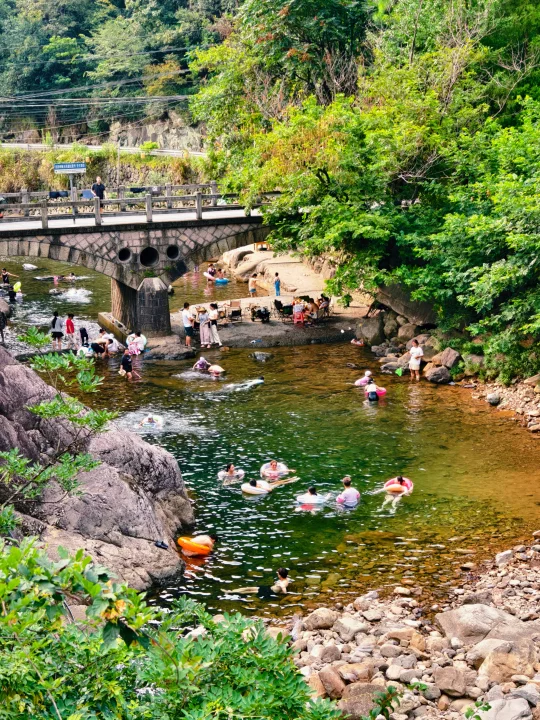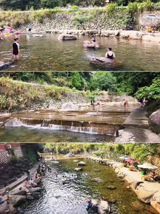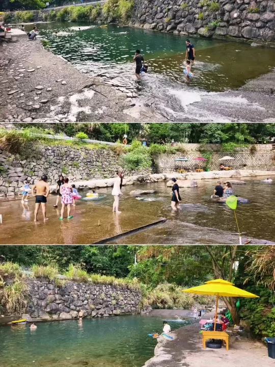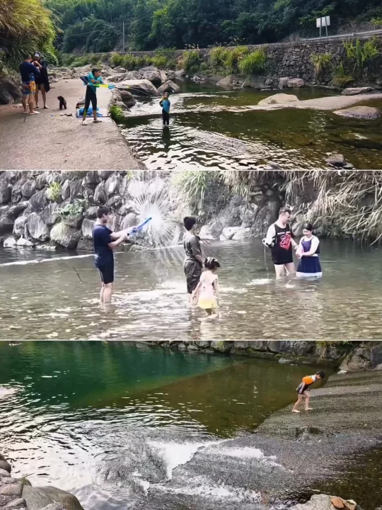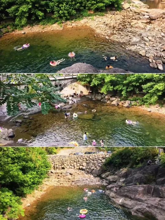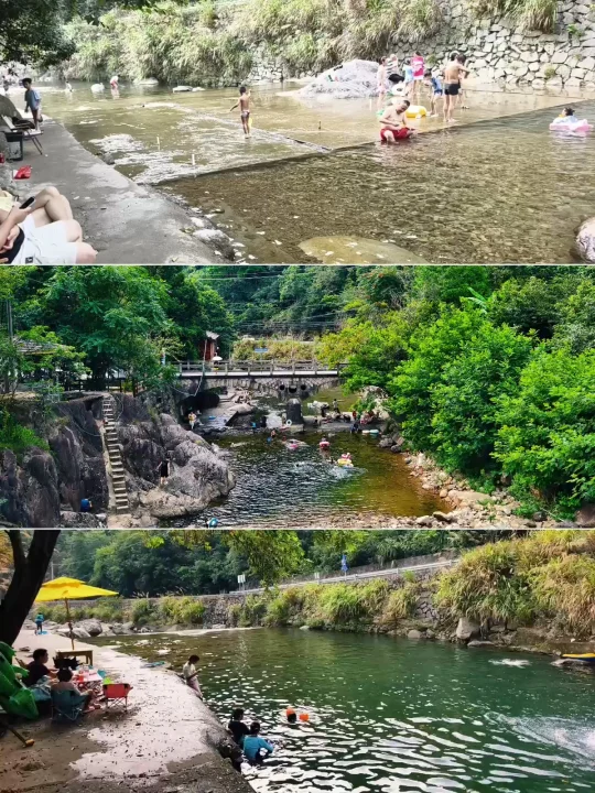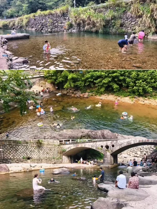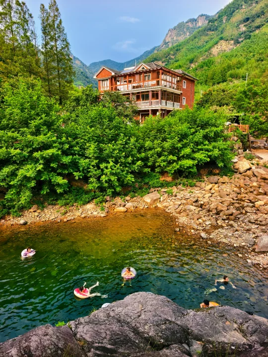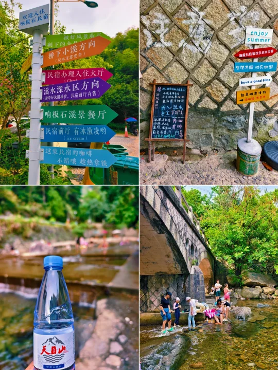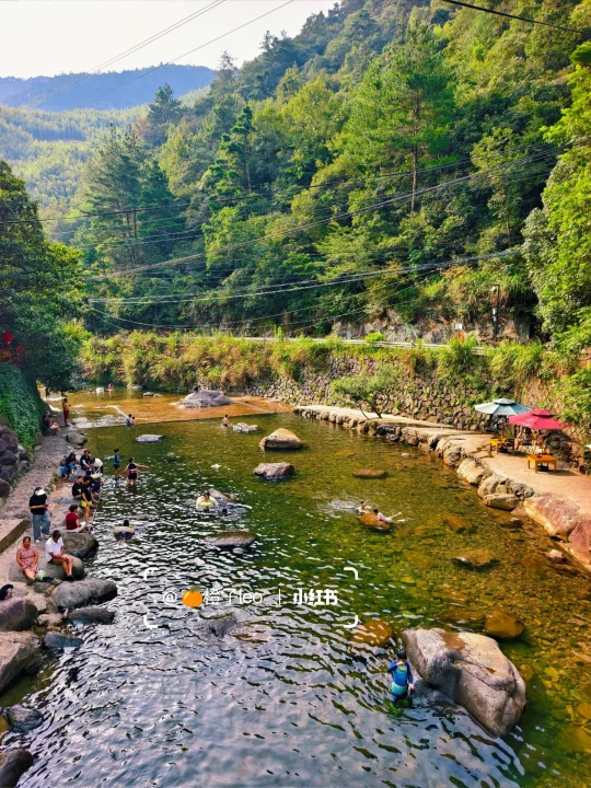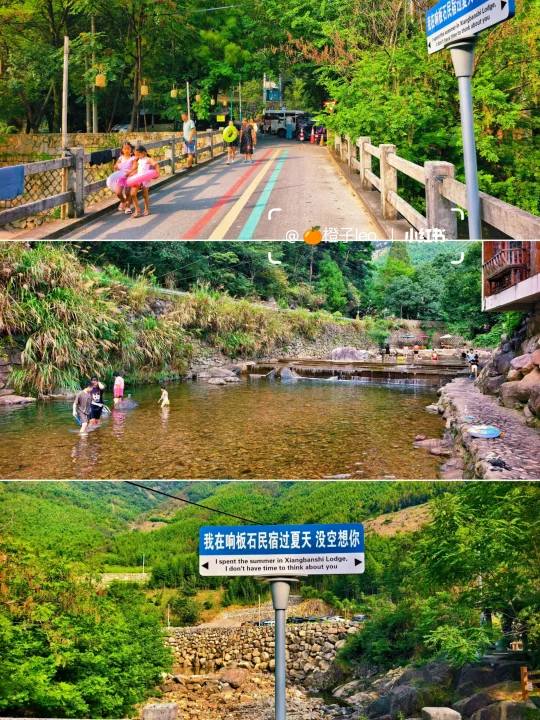 🔥江浙沪连日高温,浙江山多、溪流也多,倒是有不少消暑好去处,好玩法。特别是临安天目山一带,大鱼线、天目溪、昌化溪……随便一处,都是绝美玩水地。 🔥沿着天目溪继续北上,就到了今日玩水的终点站~响板石农庄。 🔥农庄紧挨着天目溪,溪水从天目山山涧流下,水质清澈,水流清凉透彻,一眼见底。溪水两岸绿树成荫,有天然的遮阳效果,适合避暑玩水。 🔥这里的水域有浅水区和深水区,浅水区适合小朋友打水仗、捞小鱼,深水区则可以进行游泳、桨板、跳水等活动,还能体验用石头砸鱼的野趣。