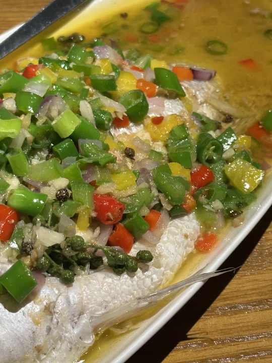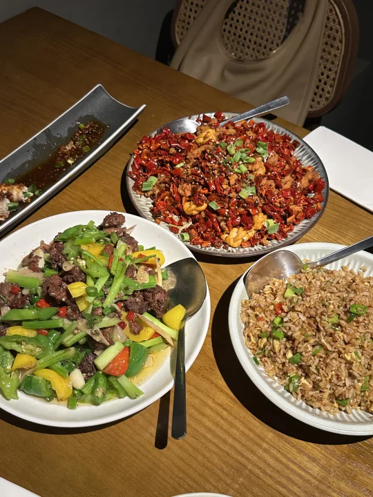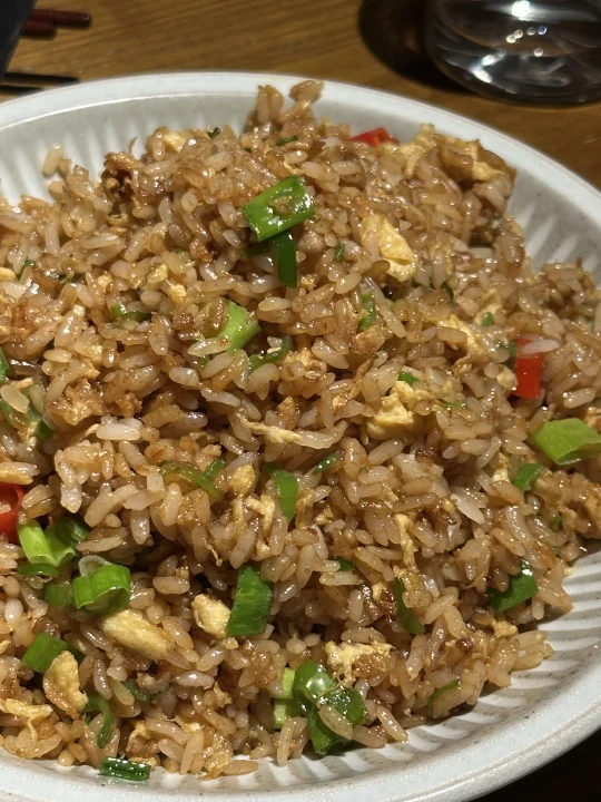 必然是LUNAR啊!自从听说差评说他家辣子鸡只有辣子,我眼睛都放光,不开玩笑,居然有这么慷慨的川菜店!在辣子里面找鸡的体验是我从小到大的熟悉记忆,所以我能体会到这种给料充足的美妙。吃过就知道,的确是这个味,当然我最喜欢的其实是过水鱼,整株青花椒就在现场,油汤汤都想瓦来泡饭,鱼肉肥嫩,嘴皮都麻安逸了!另外推荐他们家的特色炒饭,说是辣的其实我没吃出来,但是动物油脂绝对是有的,非常香,两个人分一“盆”吃得很过瘾。因为这顿没点内脏或许错过了一些LUNAR独特的菜品,下次再好好拍~