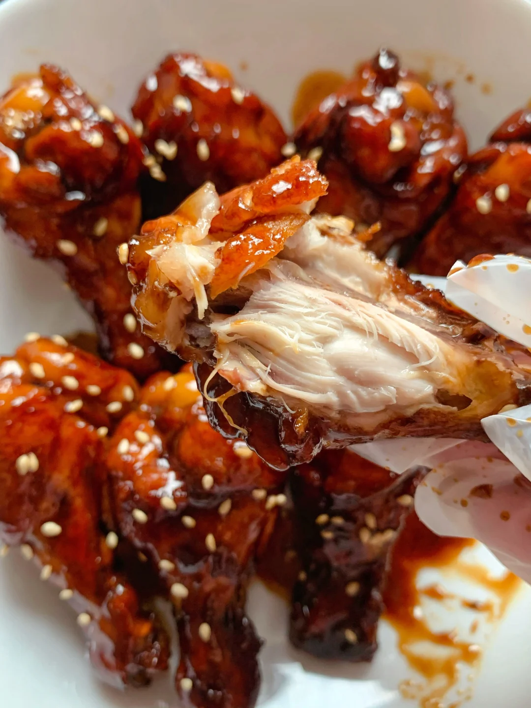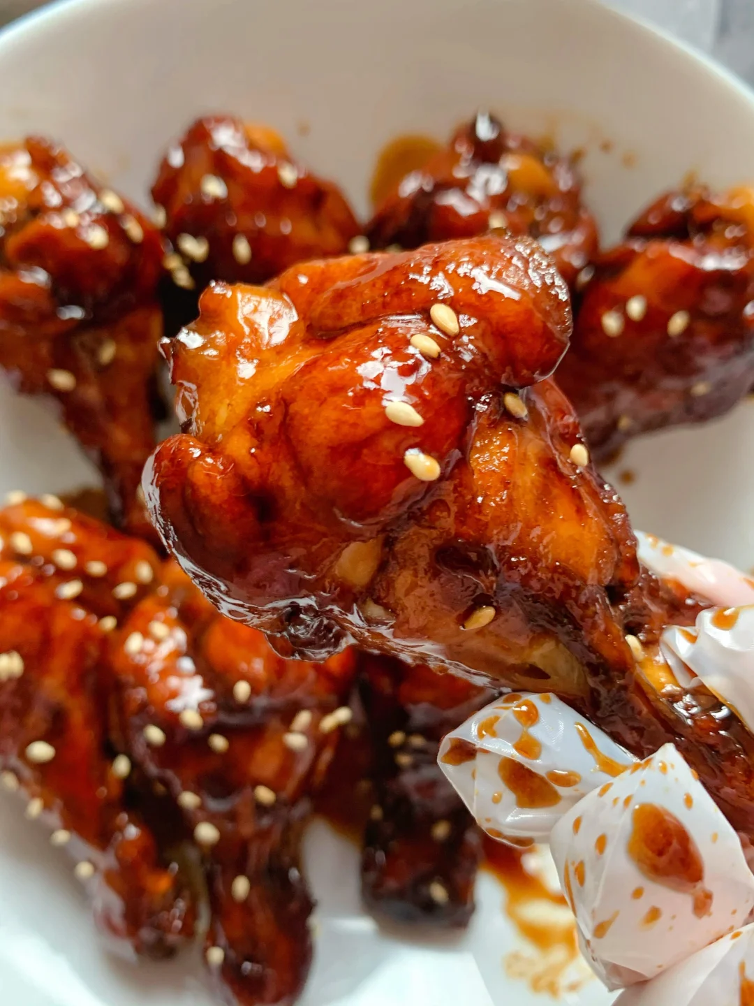 2⃣️锅内放油煎至鸡腿两面金黄,两勺生抽,一勺老抽,一勺蚝油,倒入可乐没过鸡腿,煮至收汁即可,撒上白芝麻即可