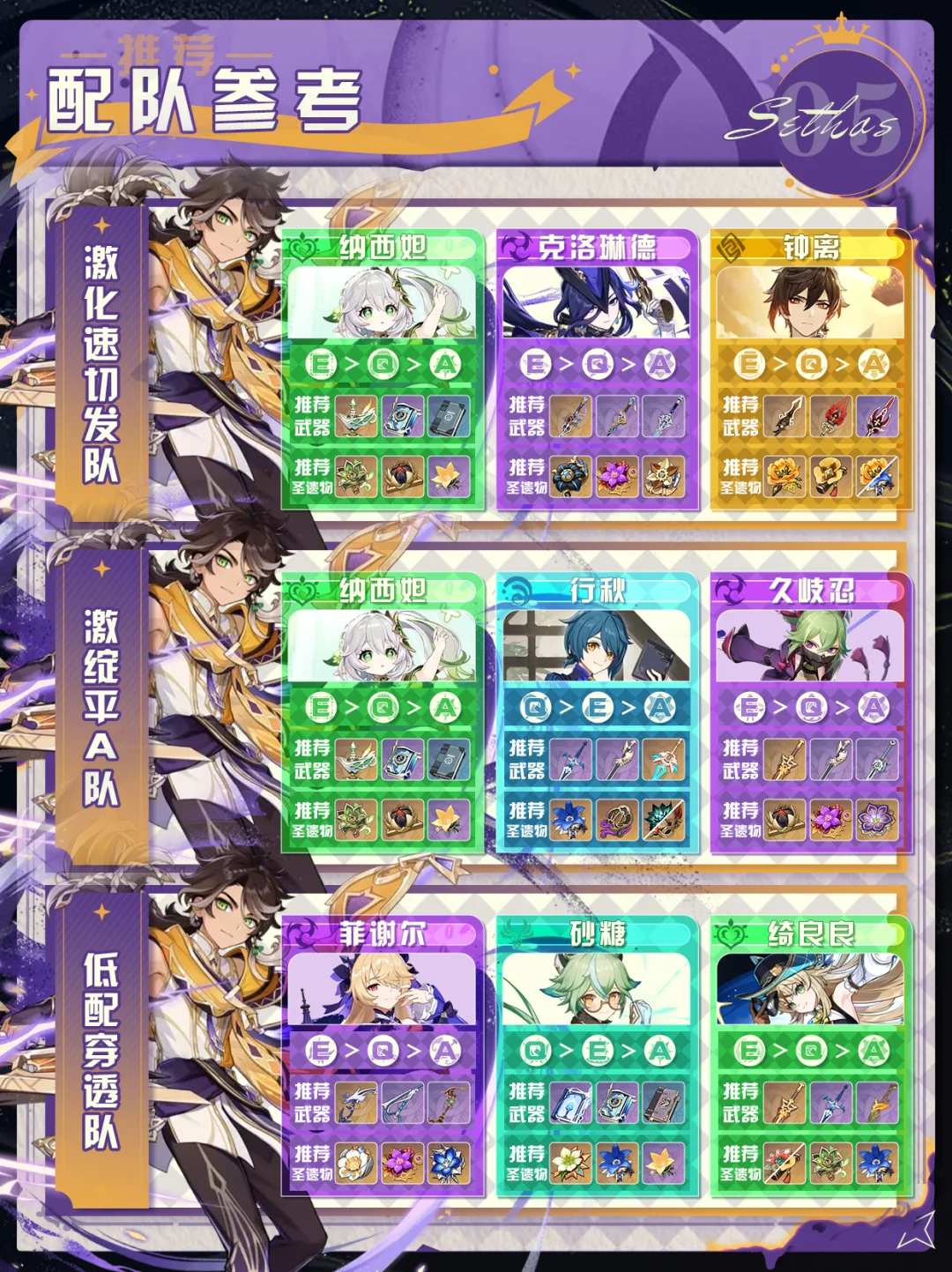 激绽平A队:赛索斯+纳西妲+行秋+久岐忍