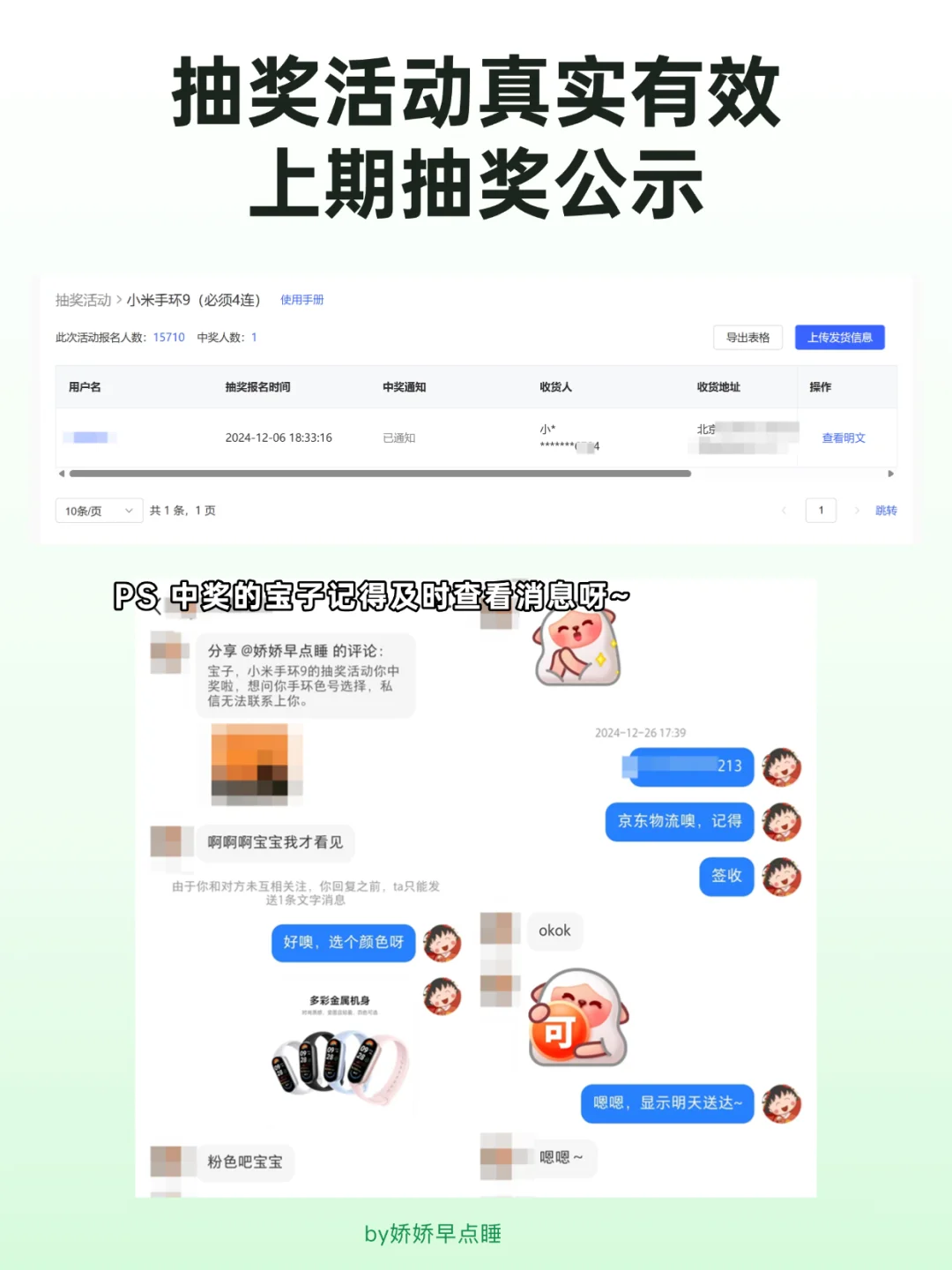 ②中奖名单公布后,需在7天内填写收货信息,逾期则视为自动放弃哦。