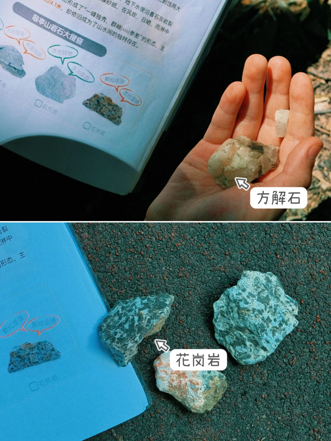 最后附上了石头图鉴,我和小翼下山时对照着找,居然真的找到了很多花岗岩、方解石……很惊喜!