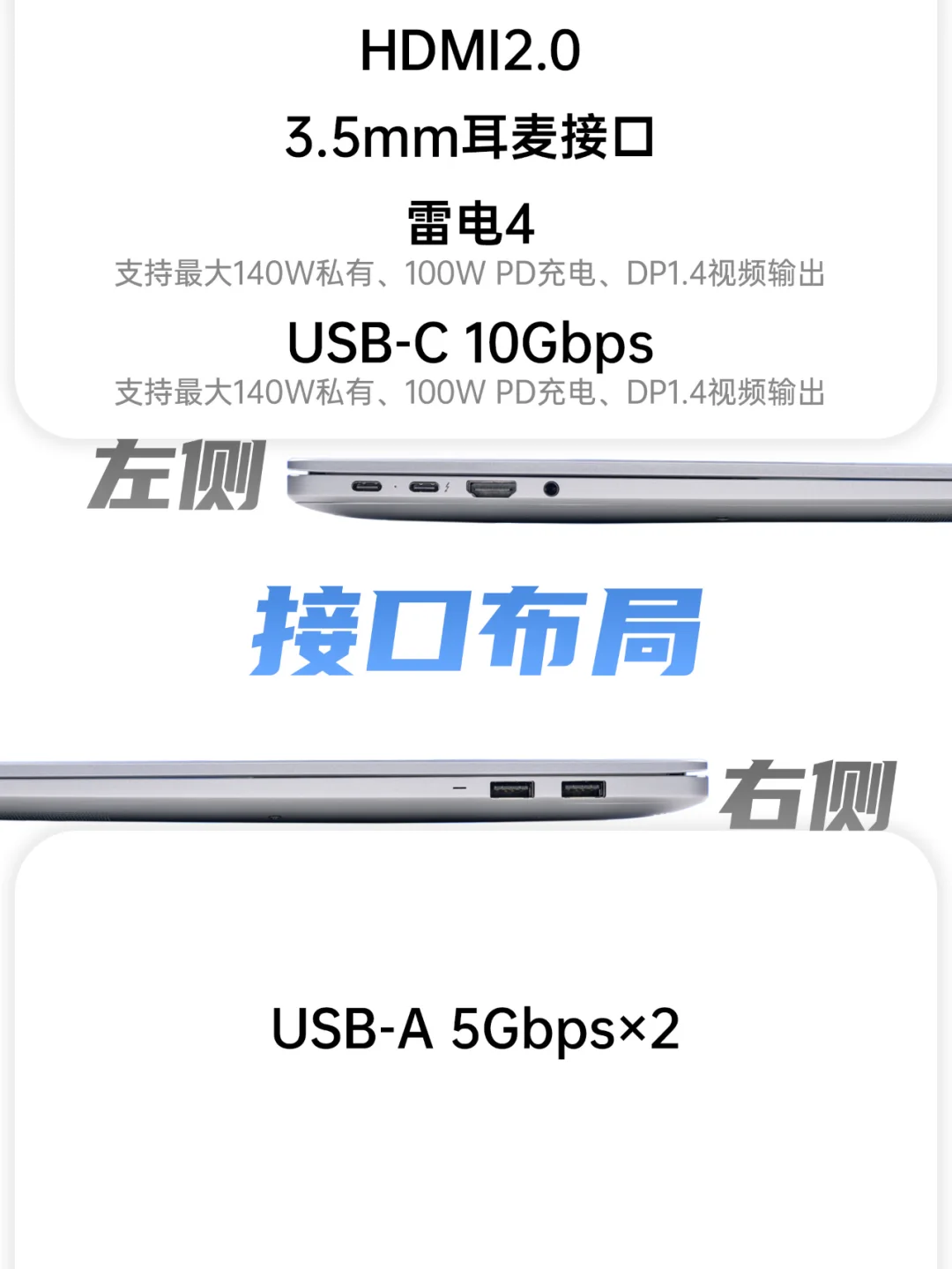 ❌同尺寸机器中接口较少,内部空间利用率不高