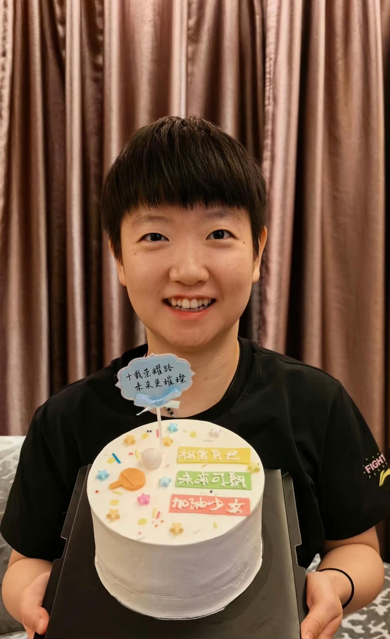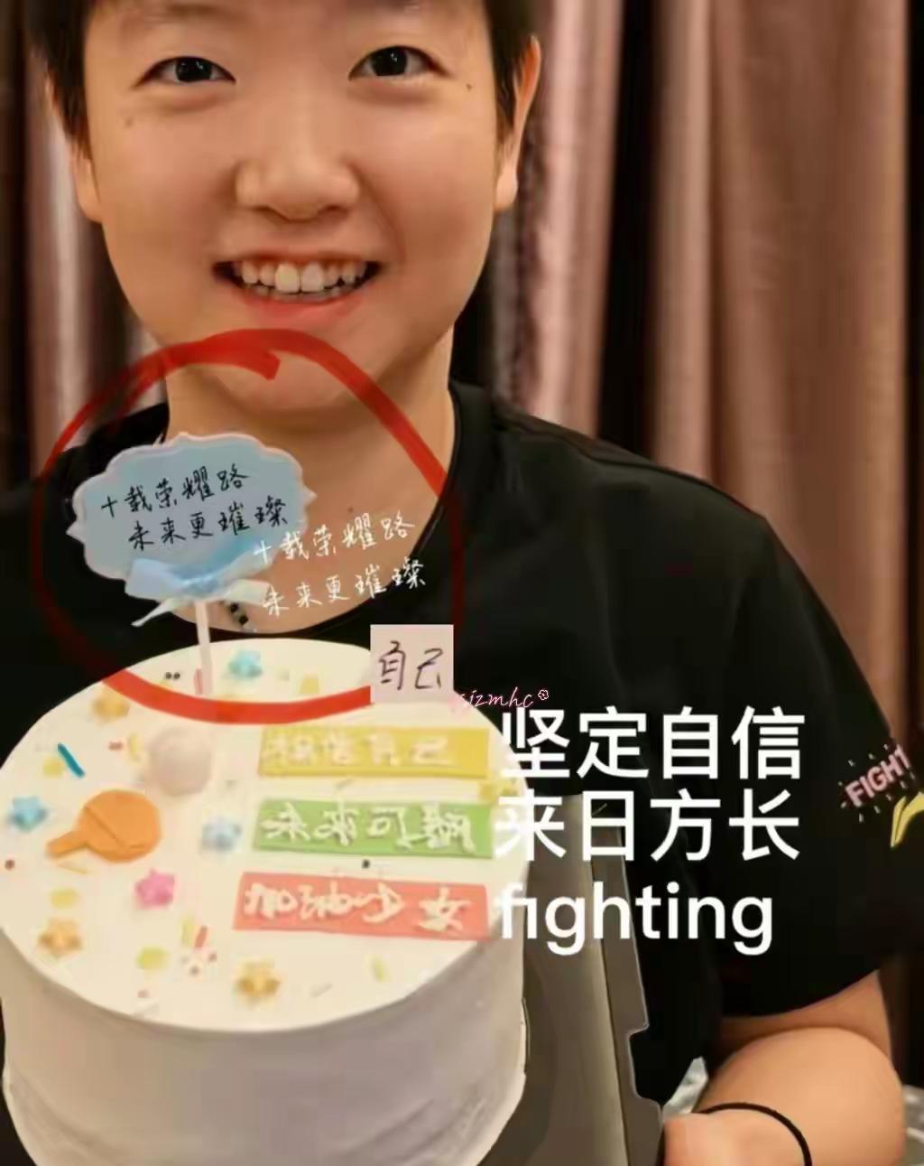 感觉蛋糕店就给了个蛋糕坯子,余下部分都是她哥完成的。字迹相似;蛋糕面上有10颗小星星代表十周年;乒乓球是左手持拍;奶油都没抹均匀,肯定不是蛋糕店的熟练工。 莎莎在国乒十年光阴,拿了102个大赛冠军,现役断层世一。在照片中,她逐渐褪去青涩,越发成熟稳重,不变的是明亮的眼睛和笑容。 十年里有8年在配混双,彼此都是生命中不可分割的部分。我们也感恩遇见这两个优秀青年,像阳光一样,点亮了平淡的生活。莎莎,十载荣耀路,未来更璀璨![太阳][太阳] #孙颖莎# #王楚钦# #王楚钦孙颖莎# #你喜欢孙颖莎吗# #国球乒乓王楚钦##莎头# #国乒# #5114#