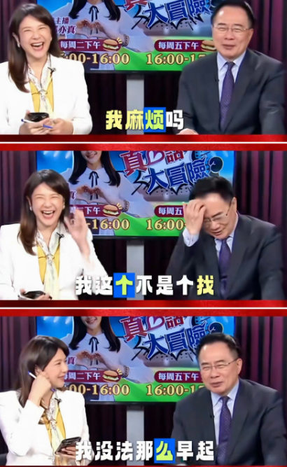蔡正元为什么没出席大阅兵? 节目里有网友问起,主持人满面笑容帮他打圆场。他说:“我不喜欢早起啦,太麻烦了。”说这话的时候,蔡博士还抬手摸了摸头。其实这次他戴着电子脚镣,无法离开拍摄现场。他完全可以堂而皇之地这么说,但他并没有,而是用“不喜欢早起”这样轻松的理由带过。可见,他早已想过该如何回应。