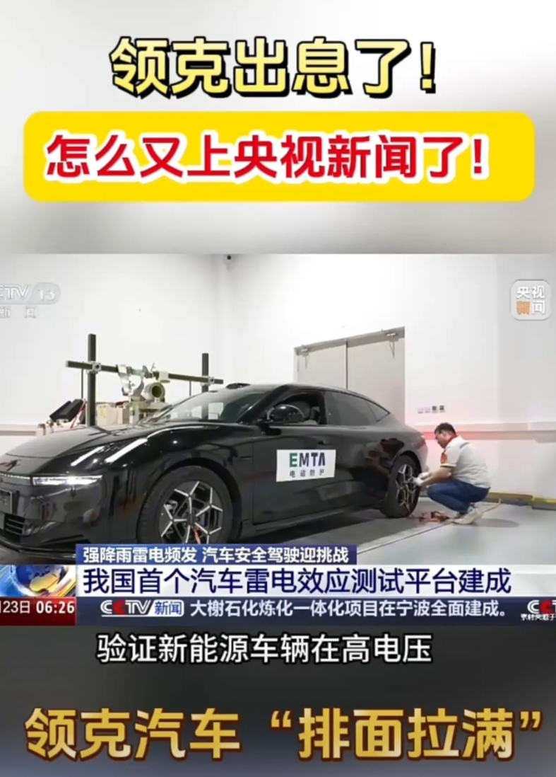 李书福出息了,领克也出息了,又上央视新闻了,今年据不完全统计是第四次。 央视新闻报道了领克10EM-P率先通过EMTA整车电磁安全测试,能够应对自然界雷电超高电流直接击中车身的极端情况 。这是国内首个汽车雷电效应测试平台建成后的重要测试成果,领克10EM-P作为首批通过该测试的车型,在安全性能方面的领先性具有示范意义,为行业提供了宝贵的参考,推动了新能源汽车安全性能的不断提升。 领克10 EM-P在8月11日开启预售,24小时内,收获了12886份订单,创下品牌本年度新品首发纪录,其中顶配240 Ultra Sport版占比达43%。 领克10EM-P的对标车型主要有比亚迪汉L DM、小米SU7、宝马5系等,其中比亚迪汉L DM是重要的竞争对手。那么比亚迪的压力又随之而来,比亚迪作为行业一哥,会不会太累呀,不过买吉利汽车一生吉利。