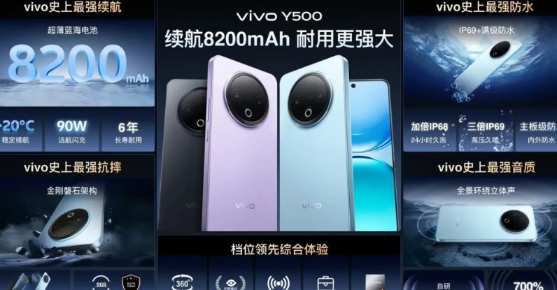 vivo Y500 可反向充电的充电宝手机,国补后1189起。