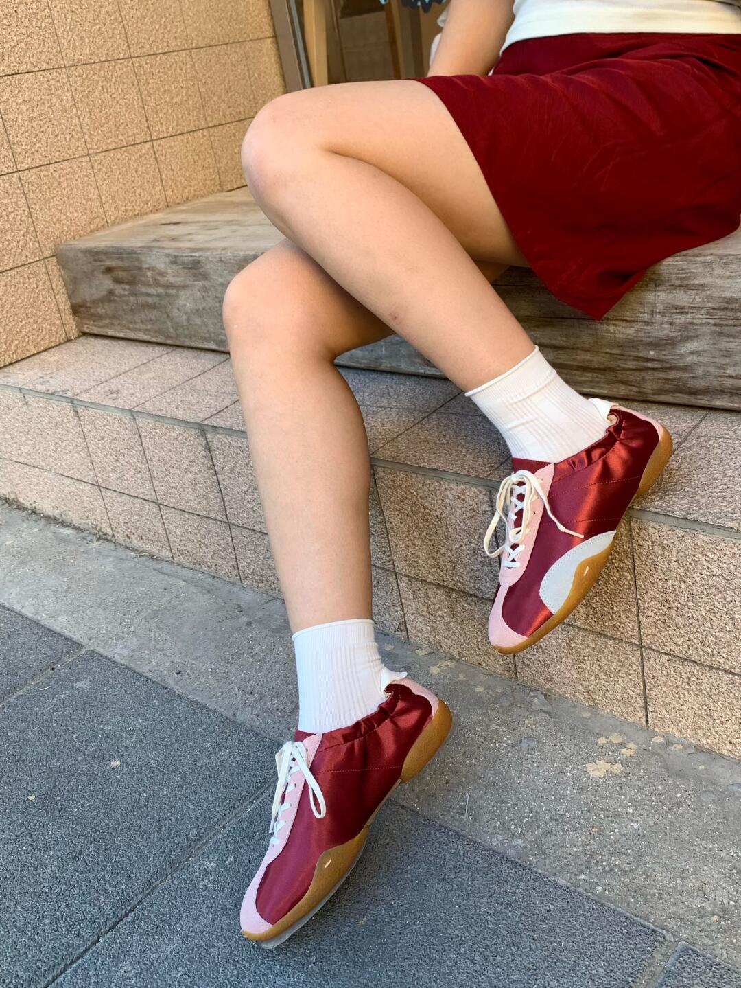 微风的轻柔感全融在鞋型里,走路时像踩着风,完全不磨脚,暴走一下午都超舒服。重点是这酒红色太显质感了,不是刺眼的亮红,是自带柔光的暖调,随意搭配都好看!