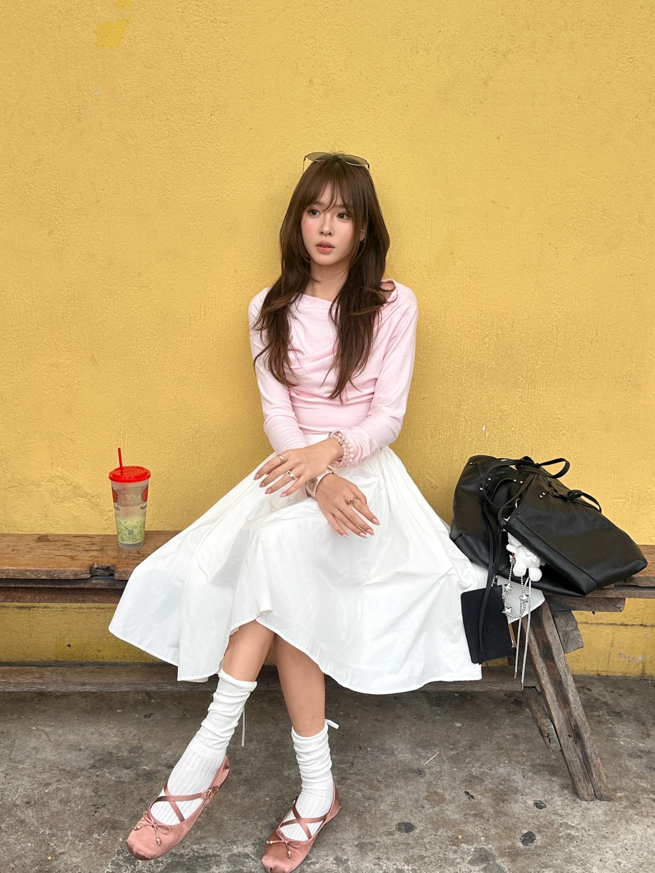 米白裙子一穿,会议室秒变T台。不靠loud颜色抢戏,靠面料说话。真丝垂得