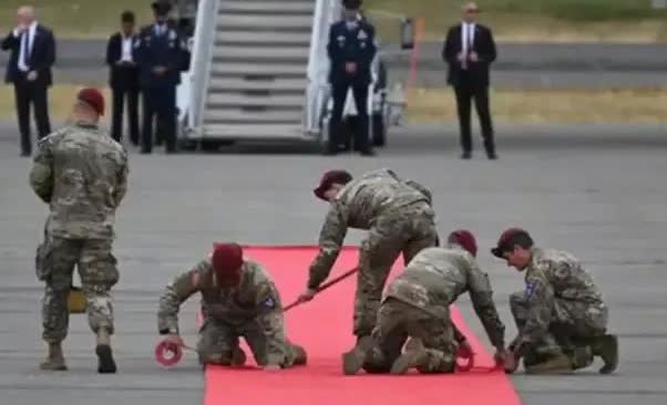 我们给普京铺红毯用机器,一次成功,又平又直,人不需要接触红毯。而美国给普京铺红毯是用人工,几个人手忙脚乱,又铺又踩,还用透明胶带粘在地上,唯恐被风刮起来。两相对比 ,高下立判,看来美国是真的日薄西山。