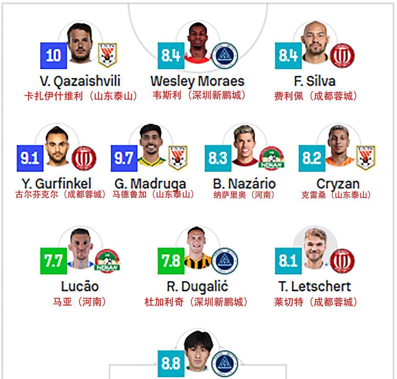 果不其然!卡扎被评为中超第23轮最佳球员。 在这场与国安的焦点大战中格鲁吉亚国脚