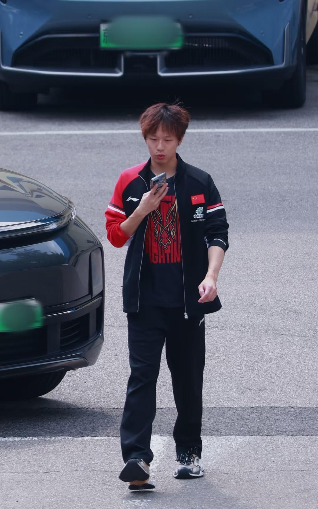 国乒今天都穿上队服了。 他们应该也都一起看大阅兵了,看着这个地方是训练馆的路上,拍照的视角是在树上,王楚钦还抬头看树上了,估计看到镜头了,这件白色短袖搭配黑色裤子,很青春。王楚钦和五竹叔走在一起,估计也是在蛐蛐树上拍照的人吧。王楚钦也是提前从新疆回北京,黄友政采访时说头哥有事儿回去了,原来楚钦是9月1日开学,去北大报到了,这又回到体总开始训练,马上就是澳门冠军赛。 看到林高远了,林高远也是打完乒超回的北京,回来暂时没有比赛,应该会准备月底的中国大满贯赛。徐奕、周启豪、黄友政他们去阿拉木图站打比赛了,看到陈熠和王曼昱走在一起,王曼昱回头时估计也看到树上的人了吧,看这个角度像是在树上拍的。 不过这个拍的是真清楚,这拍照的人挺会爬树。澳门冠军赛9月7日就要抽签了,估计国乒队员们很快也要出发了吧,比赛加油!
