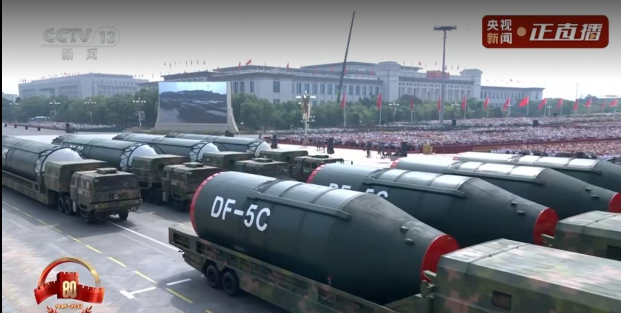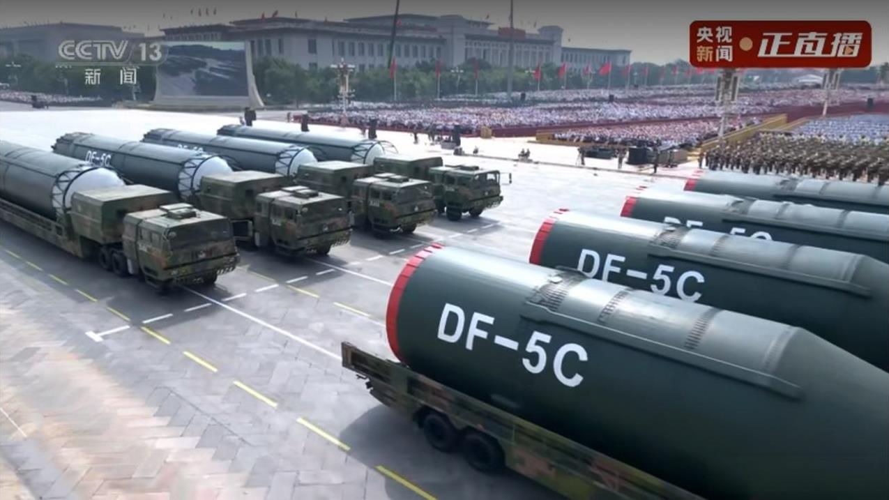这次阅兵最强的武器恐怕就属这款,DF-5C洲际核导弹,弹头、一级、二级助推器分别