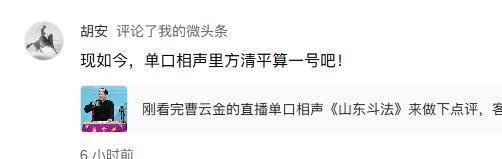 评价了曹云金昨晚的单口相声《山东斗法》后,有网友说我连常连安的版本都没听过。 我