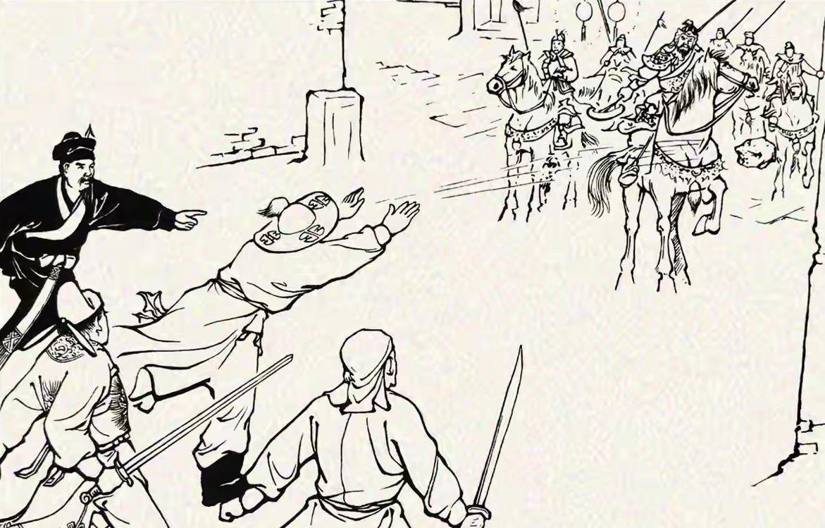 秦琼、柴绍等在长安看花灯,遇到宇文成惠强抢民女。秦琼等路见不平拔刀相助,闯入相府,救出姑娘。秦琼等怒气难消,二次进入相府,杀死宇文成惠,放火烧府。 这时候,镇殿将军宇文成都巡街回来,把秦琼等人逼进死胡同。秦琼等人在胡同内向外扔石头,想迫使宇文成都后退,寻机逃跑。不料,宇文成都只率人马后退几步,秦琼等人还是无法逃脱。 突然,从大街上跑来一人,他抡起大棍砸向宇文成都后脑勺。宇文成都猝不及防,听到大棍砸来的风声,急忙把凤翅镏金镋向后一挡,来了个苏秦背剑。“当”的一声,脑袋保住了,棍梢扫中了宇文成都后背,打的宇文成都趴在马背上,一口鲜血喷出口来。 这人趁机带领秦琼等人,逃出了长安城。