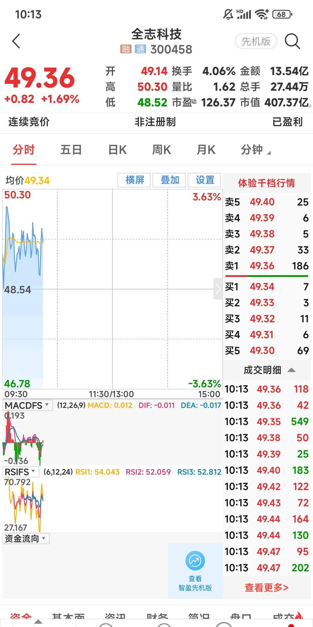 全志科技该卖还是不该卖 这阵子股市上涨,我以41.5元的价格买入两千股。 近一个
