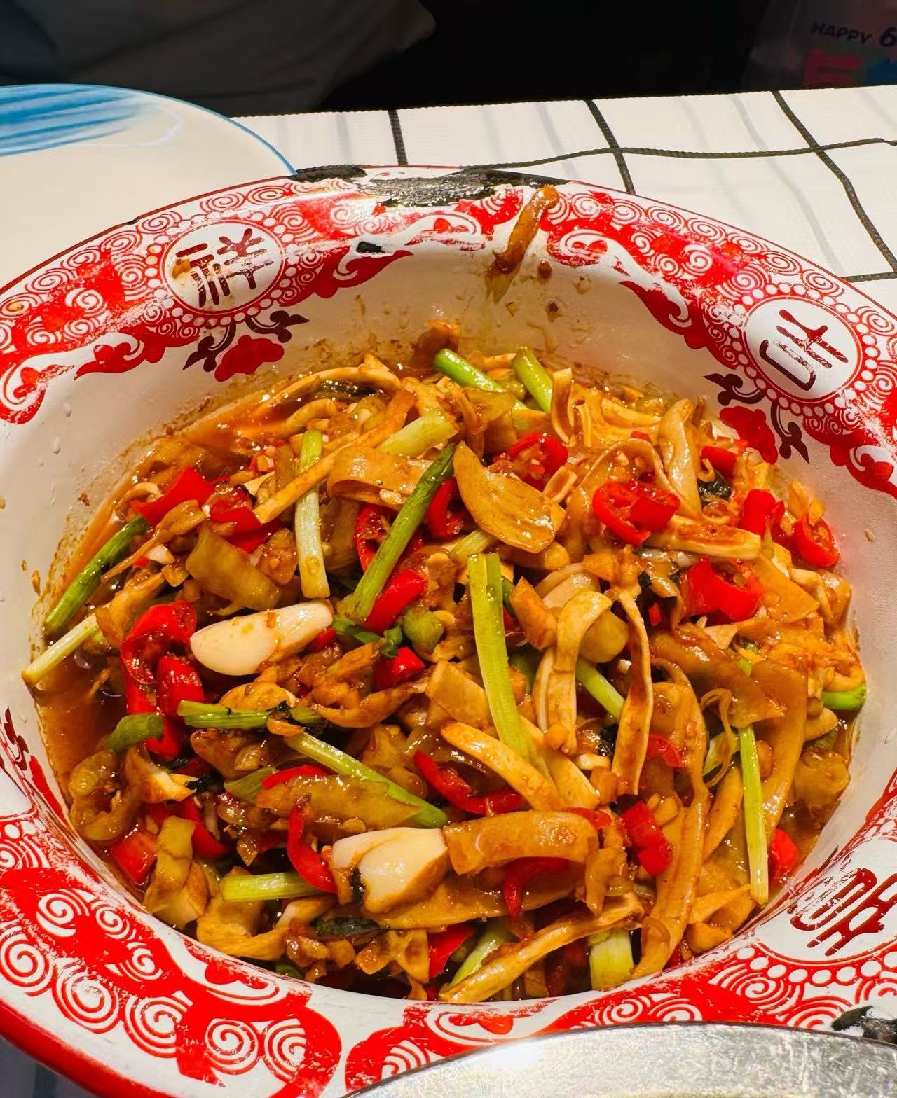 1️⃣.牛胸油干煸鸭脚筋,一道爽脆的菜,牛胸油油滋滋,鸭脚筋超Q弹。
