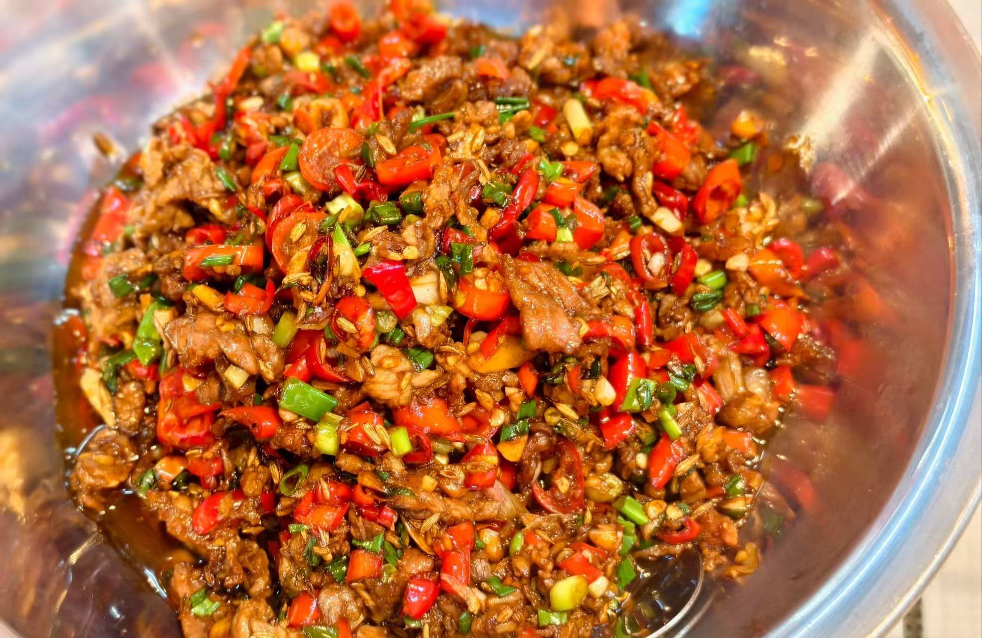 4️⃣.葱爆孜然牛肉,牛肉切得细碎,搭配青红椒一起爆炒,主打一个下饭!