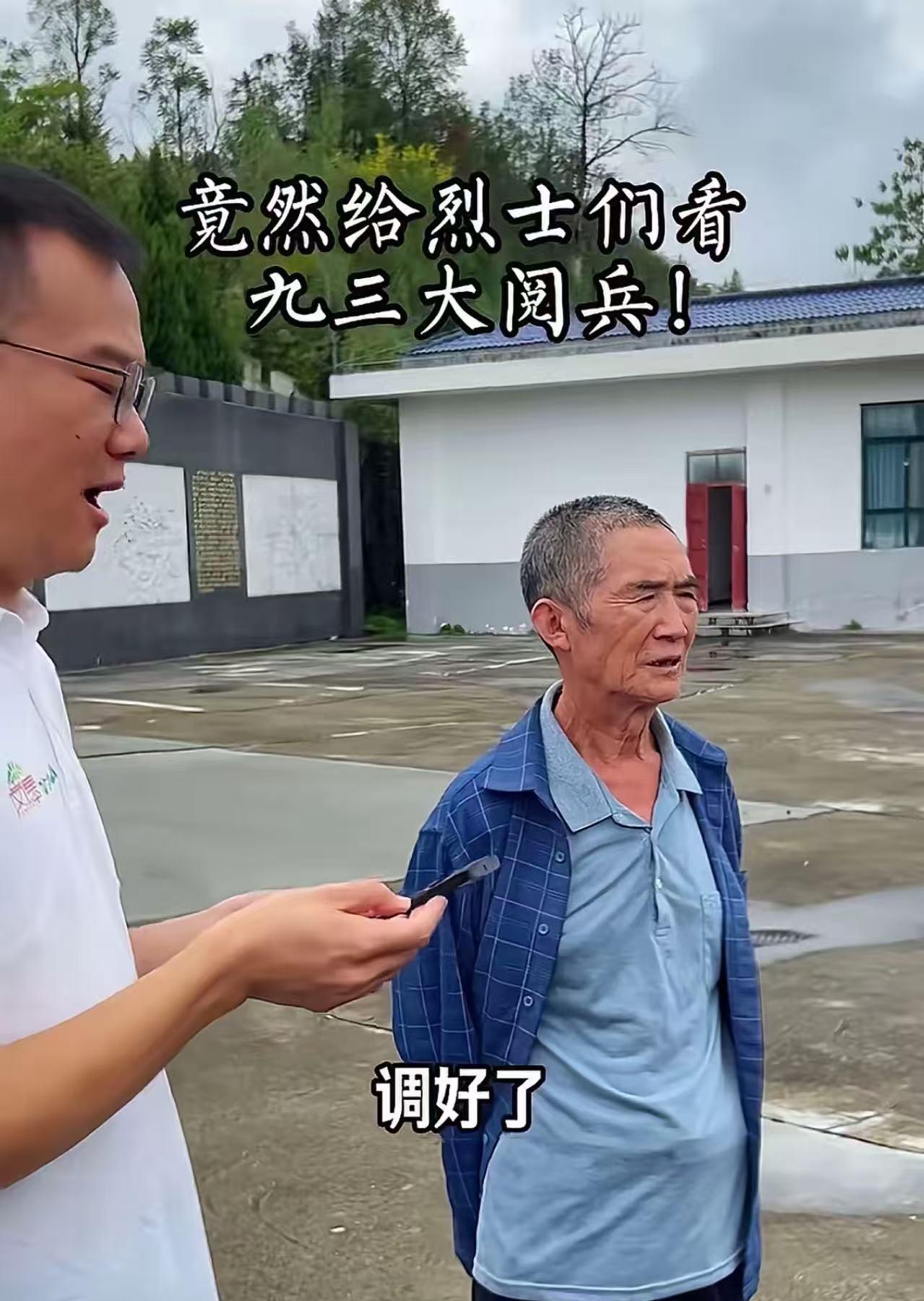 看哭了!一个男子看车路过一个陵园时,一个七八十岁的老人拦住他的车,问能不能帮他调一下电视节目,他想看九三大阅兵,可是岁数大了不会调。男子毫不犹豫地答应了,可是他老人却把他带进陵园,随后老人的做法让男子泪目! “年轻人,能不能帮我一个忙,我想看阅兵,不会调电视啊?” 男子透过车窗,看到老人那饱经沧桑的面容,心中莫名一酸。他的父母也和老人差不多的年纪,平日里也常常被电视的操作难住,每次都得他手把手地教。 所以,当听到老人这个请求时,男子没有丝毫的犹豫,立刻爽快地答应了。 他把车稳稳地停在路边,跟着老人下了车,准备去帮他调电视。可让他万万没想到的是,老人并没有带他去附近的居民楼,而是径直把他领进了旁边的烈士陵园。 男子心中不禁泛起一丝疑惑,难道老人就住在这陵园里吗? 带着这份好奇,男子跟着老人继续往前走。直到老人在一块烈士墓碑前的空地上停了下来,然后伸手指了指空地上摆放着的一台电视,缓缓说道:“我是烈士陵园的守陵人,已经在这儿守了几十年了。这台电视是我昨天特意借来的,就想着能让烈士们看看九三大阅兵,看看咱们现在的盛世繁华。” 听到老人的这番话,男子只觉得鼻子一酸,眼眶瞬间就湿润了,泪水不受控制地夺眶而出。 他原本以为老人只是自己想看阅兵,却怎么也没想到,老人心里惦记着的,是那些长眠于此的烈士们,想让他们也能“看到”如今国家的强盛与繁荣。 那一刻,男子对老人充满了深深的敬佩,他觉得老人的这份坚守和情怀,实在是太珍贵、太难得了。于是,他忍不住把这件事发到了网上,希望能让更多的人知道老人的故事。 此事引发了热议,有网友说,太感动人了!给先烈们看阅兵现场,告慰先烈们你们的鲜血没白流,你们的后人现在生活的很安定幸福,先烈英雄们安息吧! 也有网友说,这个老人太有心了!告慰英烈,这盛世如你所愿! 还有网友说,这让我真的想不到啊!感动之余,真想骂电视厂家几句,为什么把电视搞得这么复杂! 感动之余,这件事情也引发了我们的思考!电视机厂商们真得好好看看了!以前的电视,打开就能看,操作简单又方便。 可现在的电视呢,功能越来越多,操作也越来越复杂,很多农村的老人根本就不会用。 我们是不是应该在追求科技进步的同时,也多考虑一下老年人的需求,让科技更有温度呢? 毕竟,每一个人都有老去的那一天,我们都希望在那个时候,也能被这个世界温柔以待! 一个七八十的老人,都知道让烈士看看阅兵仪式,为什么厂家就没想过呢?
