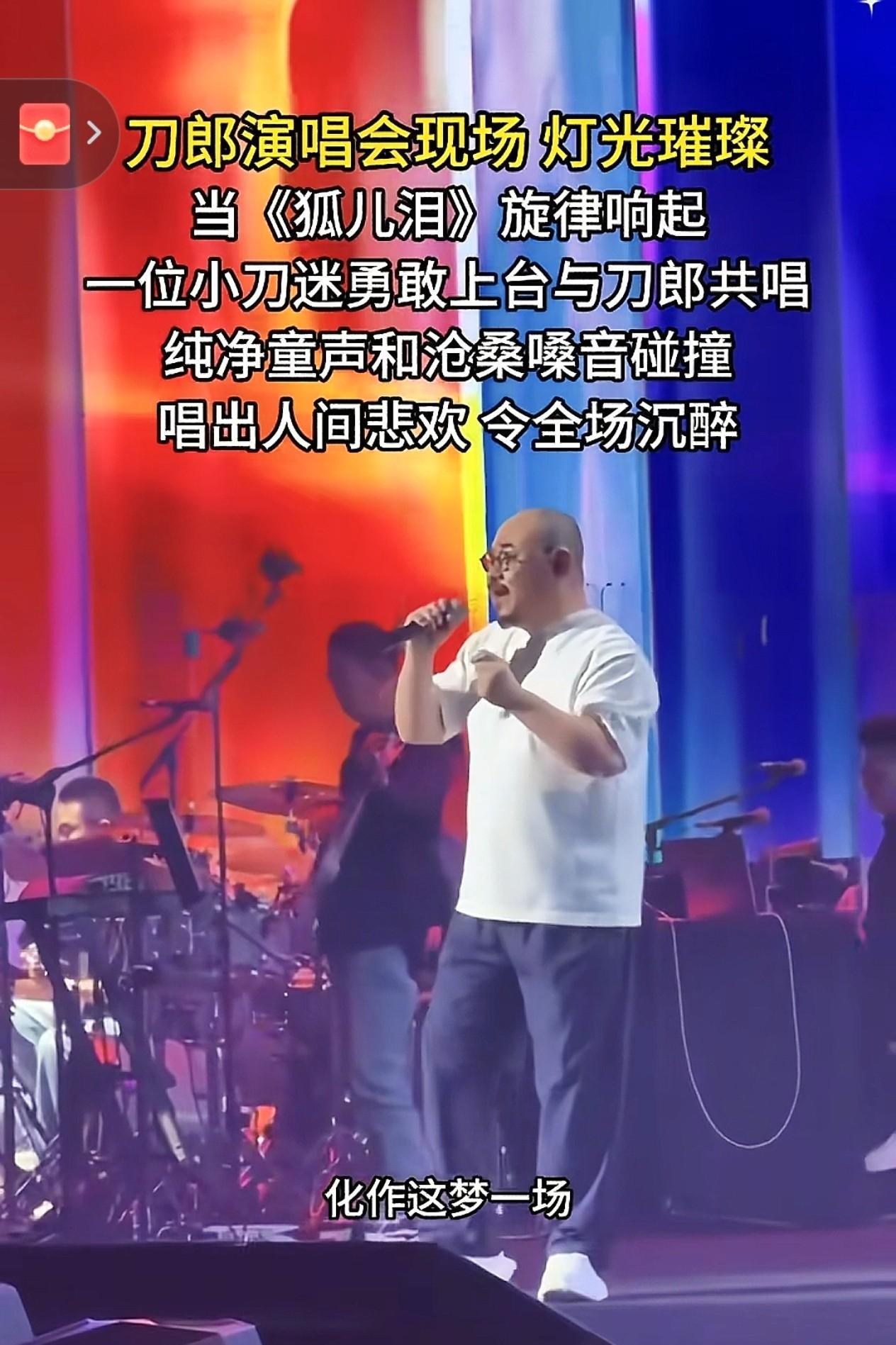 刀郎演唱会暖心时刻:小刀迷同台唱《狐儿泪》 刀郎演唱会现场灯光璀璨,当《狐儿泪》
