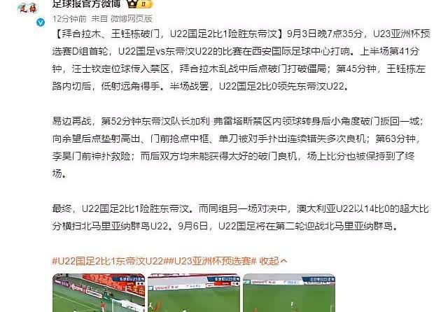U22国足2:1力克东帝汶,赛后多位媒体人进行了点评,其中前国家队名宿对于这批球