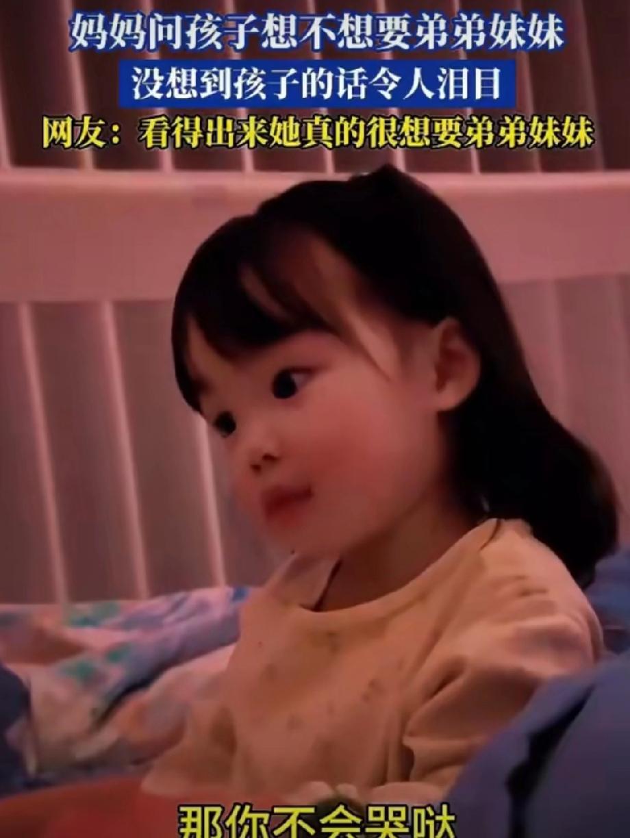 当妈妈问起是否想要弟弟妹妹时,原以为会得到孩子生气的回答,没想到孩子的话既真诚又戳心,让人忍不住泪目。