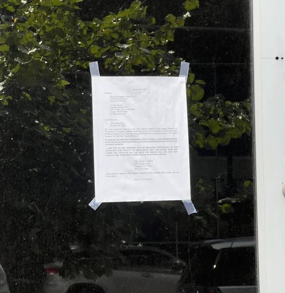 “人走茶凉”?哈登在休斯敦的餐厅因为拖欠房租和其他款项总计220万美元而被关闭。