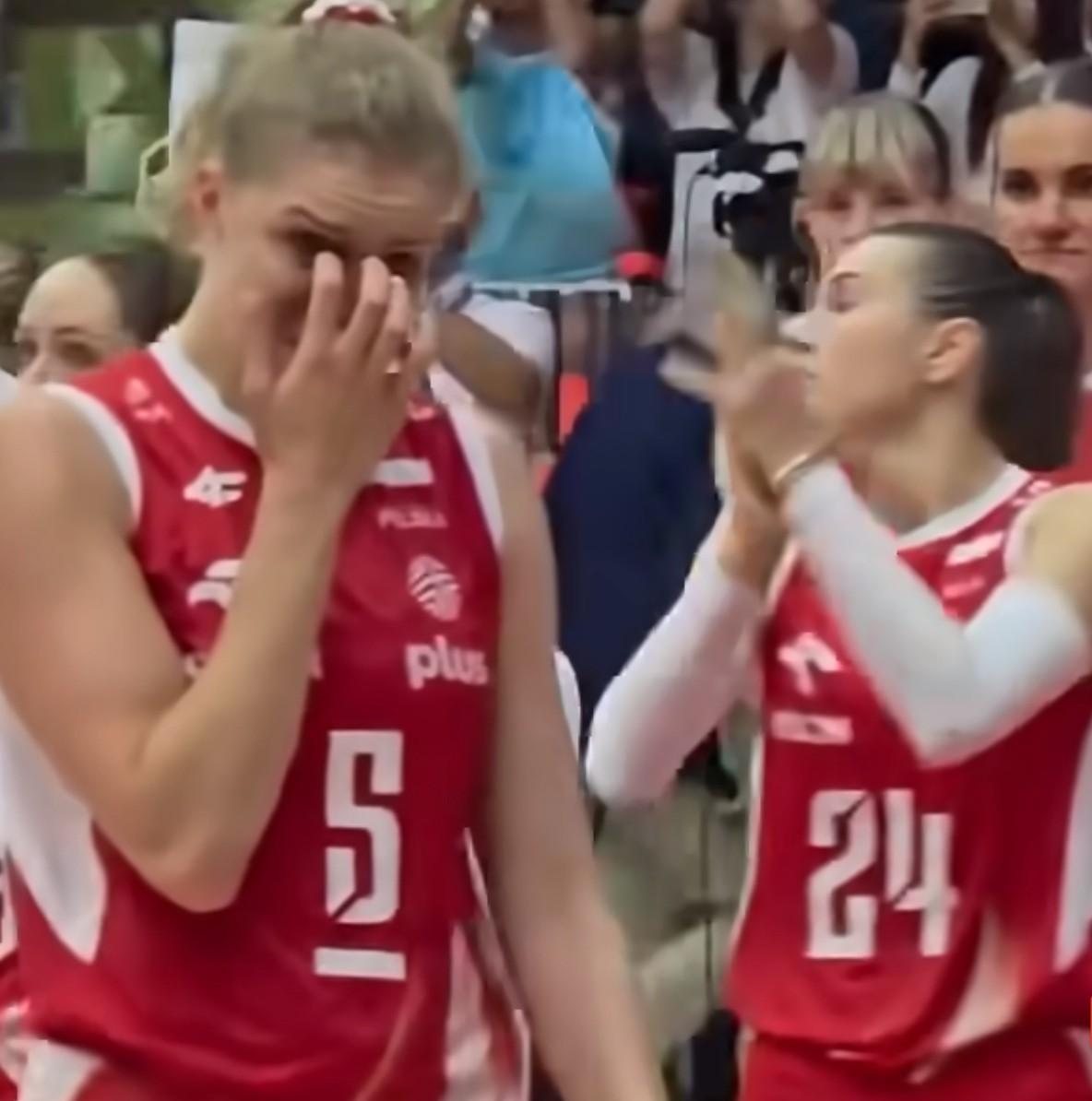 波兰女排的队长科内卢奥克哭得梨花带雨的!昨晚上输球后,波兰女排队员好多都哭了,尤
