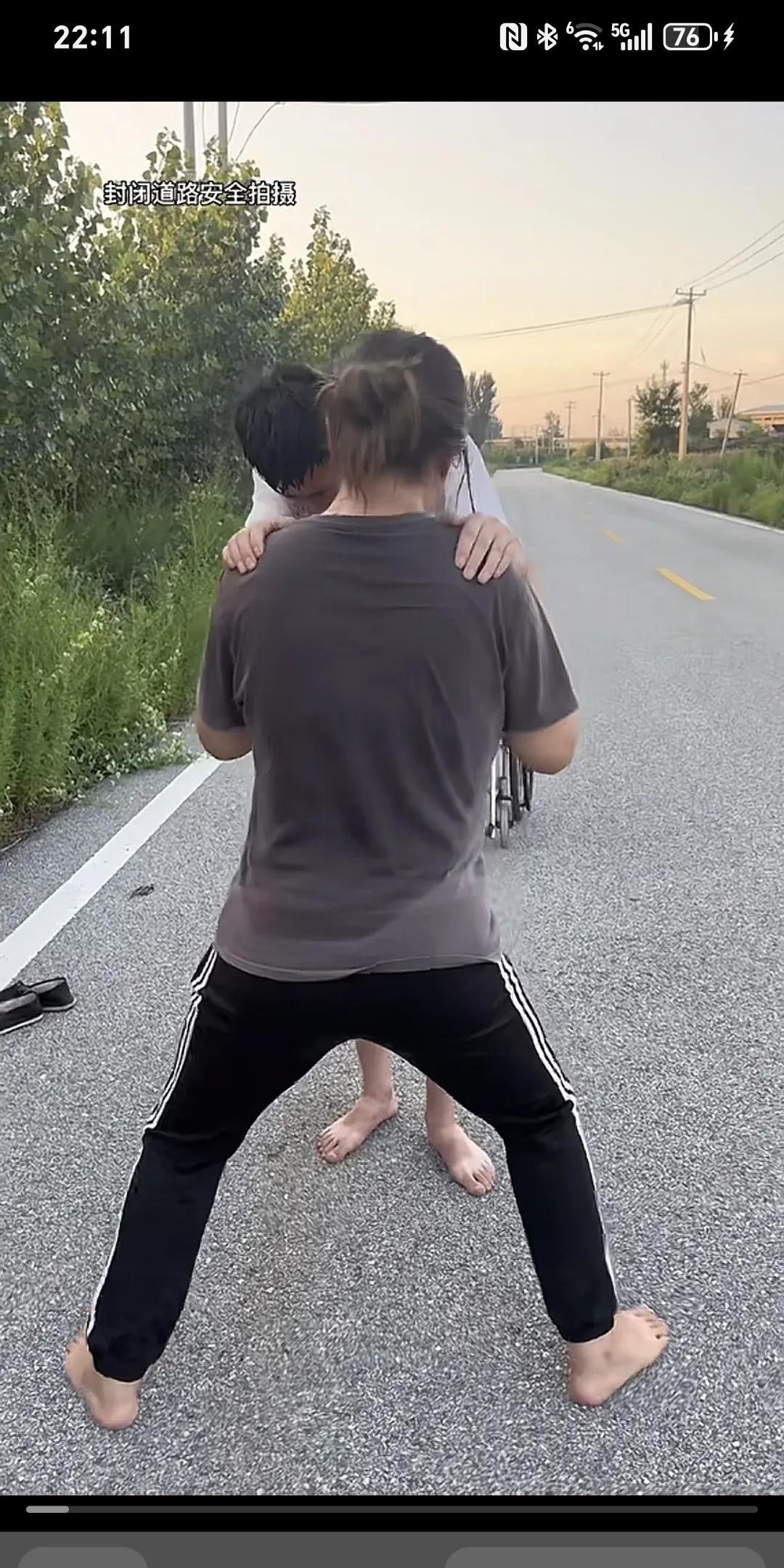 老婆为了让老公战胜病魔,早日恢复健康,冒着酷着,汗流浃背,两人光着脚走在烫脚的路面上,搀扶着老公艰难的移动着身体。 真正的搀扶就是这样,这才是永远爱你,这个动作怕你摔了时刻准备着,这就是幸福。 小伙再苦再累也要坚持康复训练,摊上这样的好老婆,一定努力努力再努力。