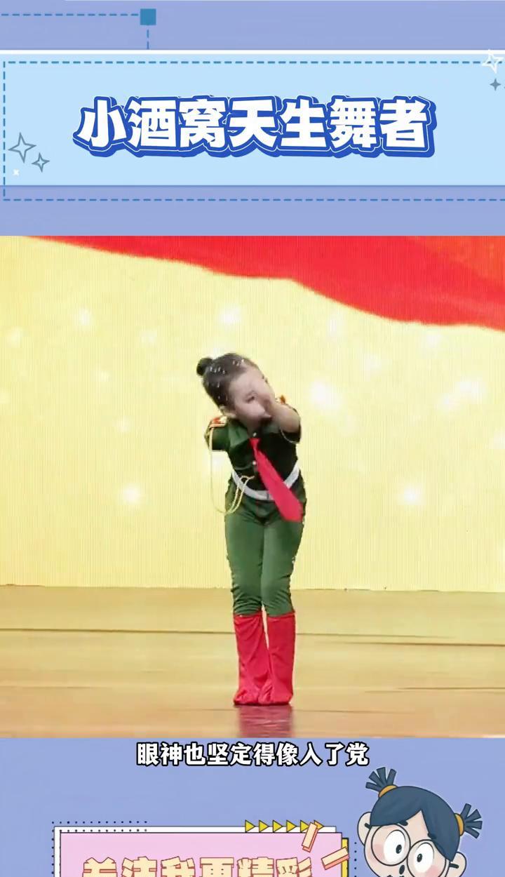 小酒窝天生舞者。 小酒窝就是天生学舞蹈的料吧。刷到小酒窝穿着军装跳舞,这舞蹈动作沉稳有力,将每一个动作都展现得极具张力,没有一丝敷衍,眼神也坚定得像入了党。颜值并不是她唯一的优点,不愧是星二代里最拿得出手的小孩。