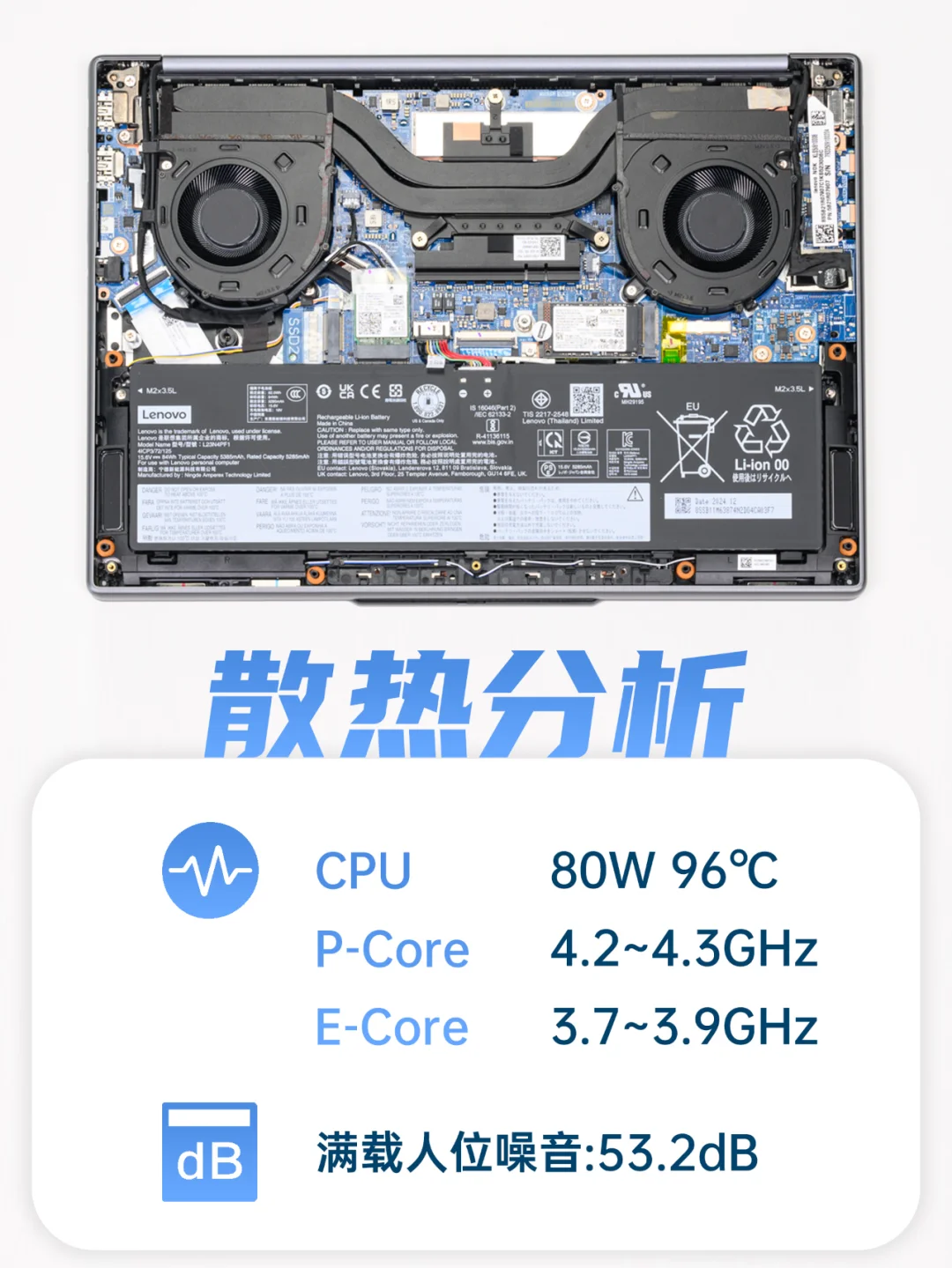 身为小新Pro14的迭代款,它在核心规格、外壳做工、键盘设计、屏幕素质、接口速率上都有提升,满载核心温度也从去年的107℃降低至96℃。