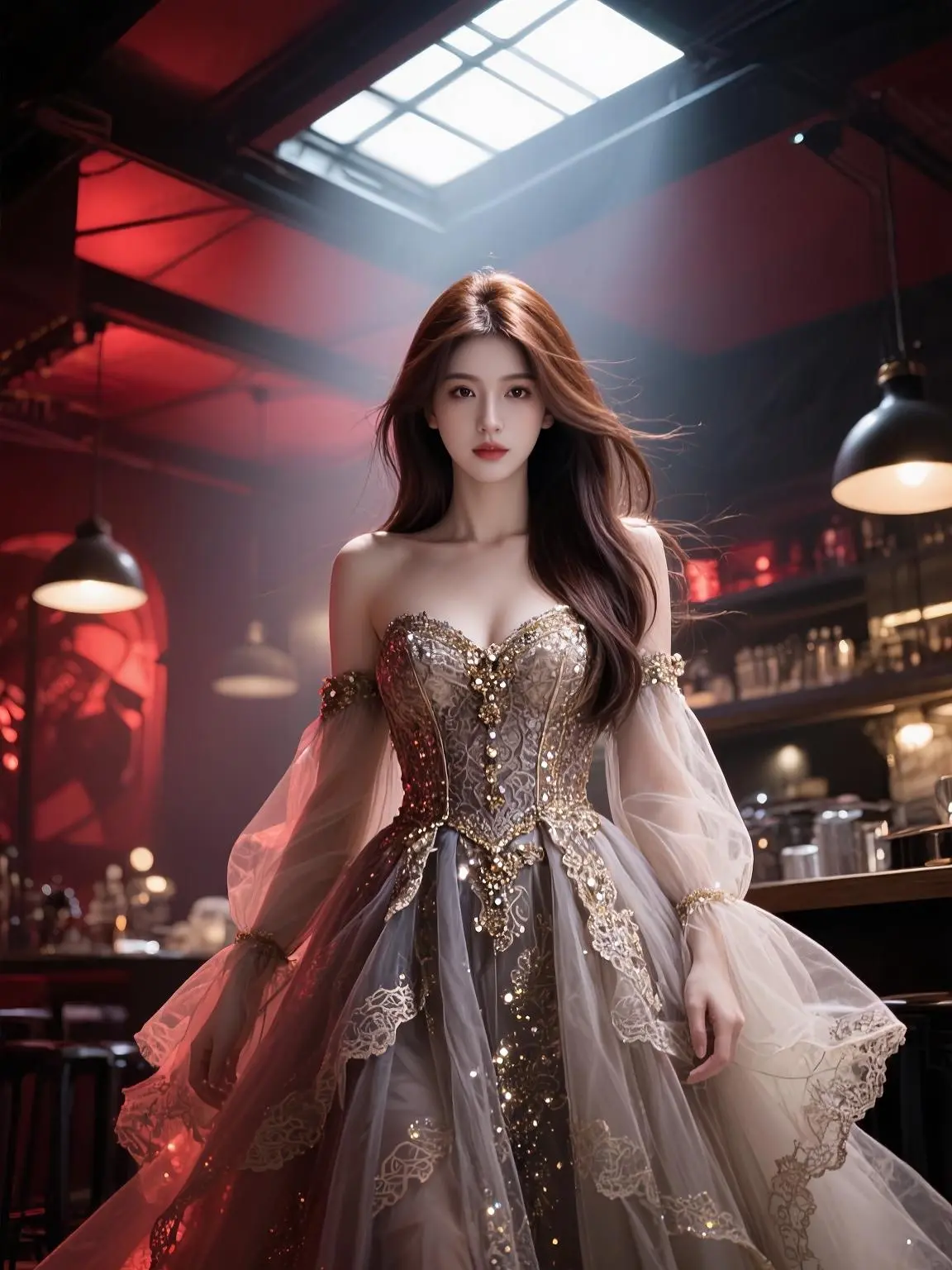 星光散落裙摆,镶嵌的不止是光芒,还有无法掩藏的优雅。