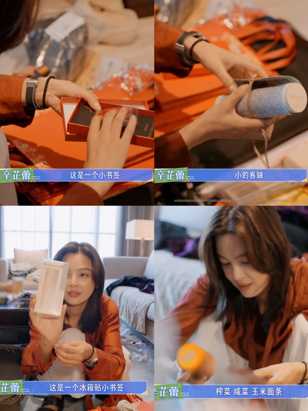礼物准备这一块大家都很用心,准备了一些宣传家乡的文创,像是胡先煦天津的泥人张,王安宇的阳明书法手提包等,行李准备大家就带了一些很好用的旅行好物,比如秦岚就带了泡脚折叠桶还有翻译器等等,这些都可以在🍑和🐱找到啦!