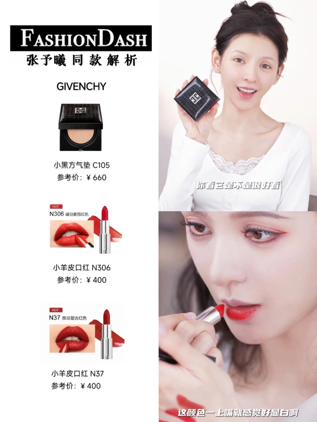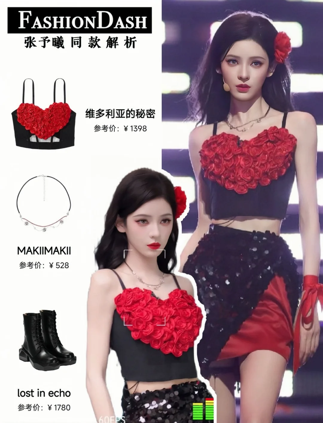 底妆方面她用了气垫,口红叠涂了两只,红色的眼线笔是点睛之笔,腮红以及修容高光她也有介绍。顺便也给你们扒出来舞台和仿妆的穿搭了,一起来看看吧!