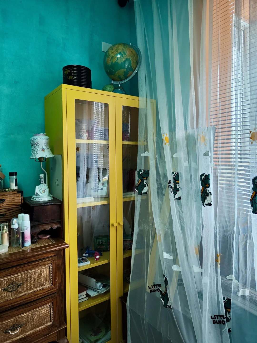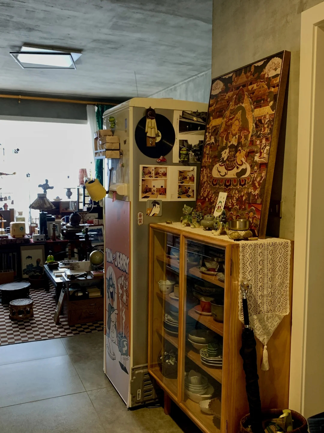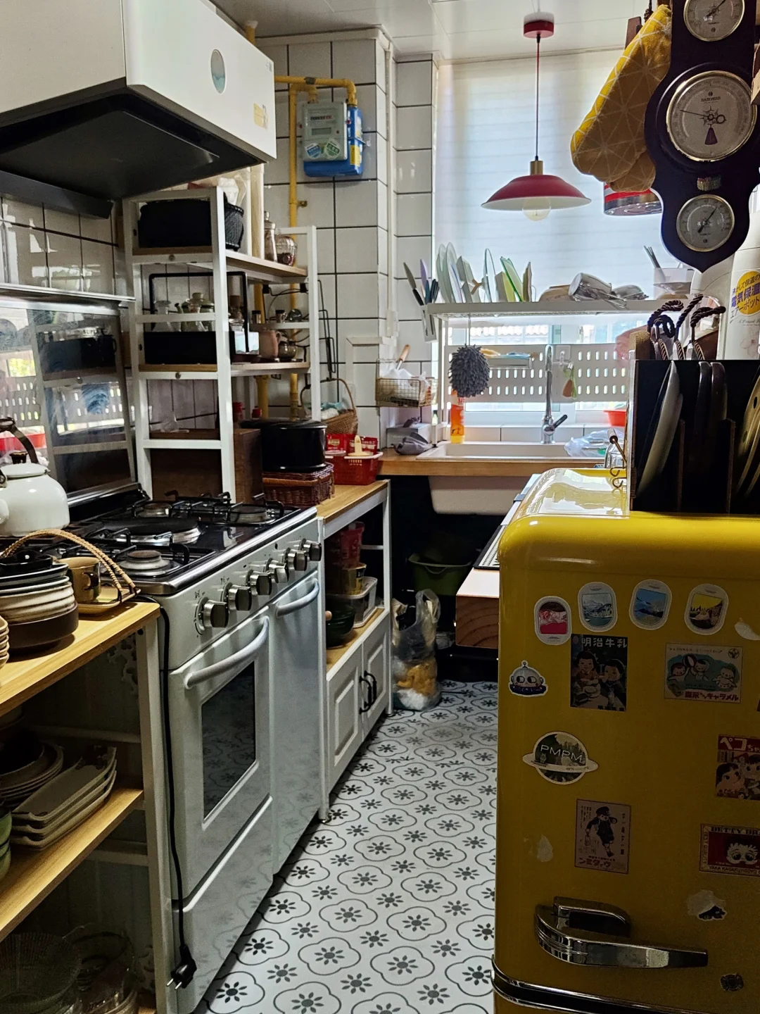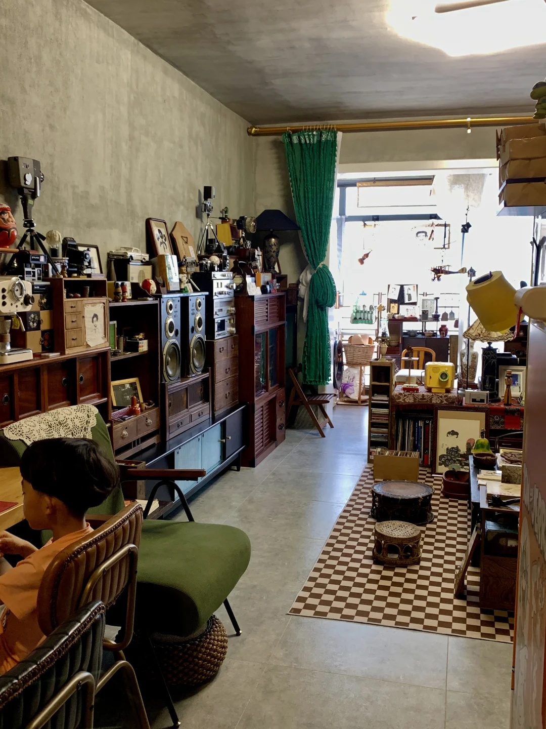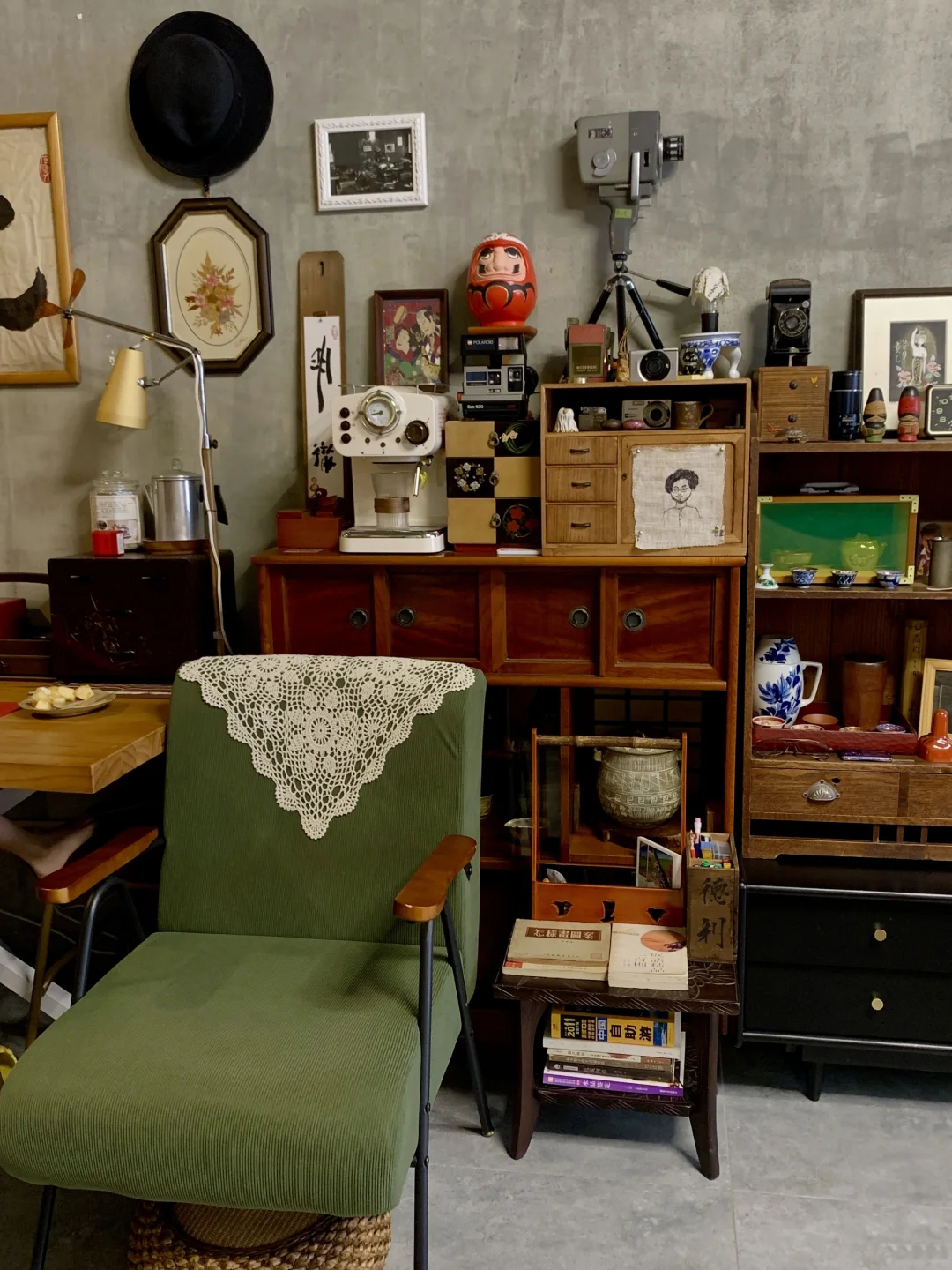 比如这位妈妈,除了爱睡懒觉外,还喜欢收集各种老物件,从老式实木家具、相机、大音响,各种款式的挂钟和台灯,以及唐卡、书法、国画等字画,只要看上的,不管新旧统统搬回家,收拾干净后,再摆放得整整齐齐,让整个空间自带复古感。