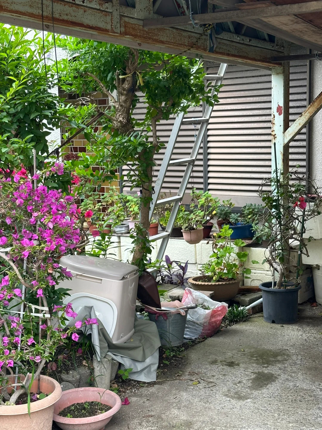 这位老太太没走多久,不知道这些植物还能坚持多久,你看那罗汉松已经冒出新芽却无人修剪,围墙边、2楼露台的花坛已经杂草丛生,满满变成荒芜,她会挂念吗?