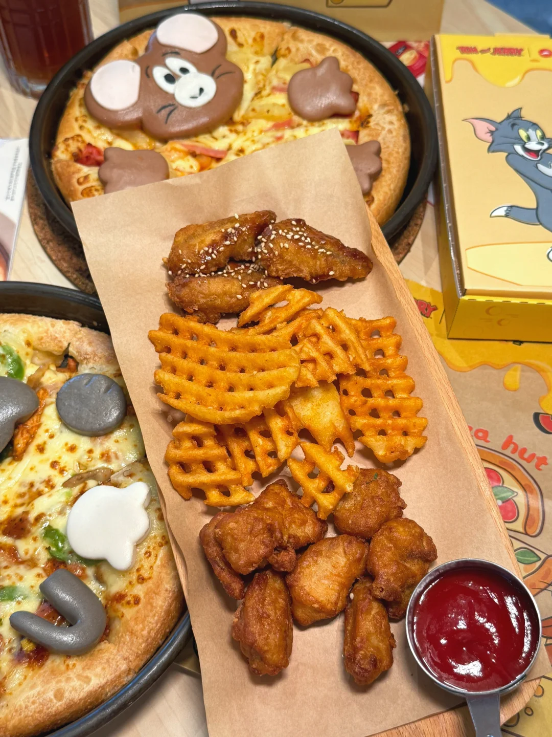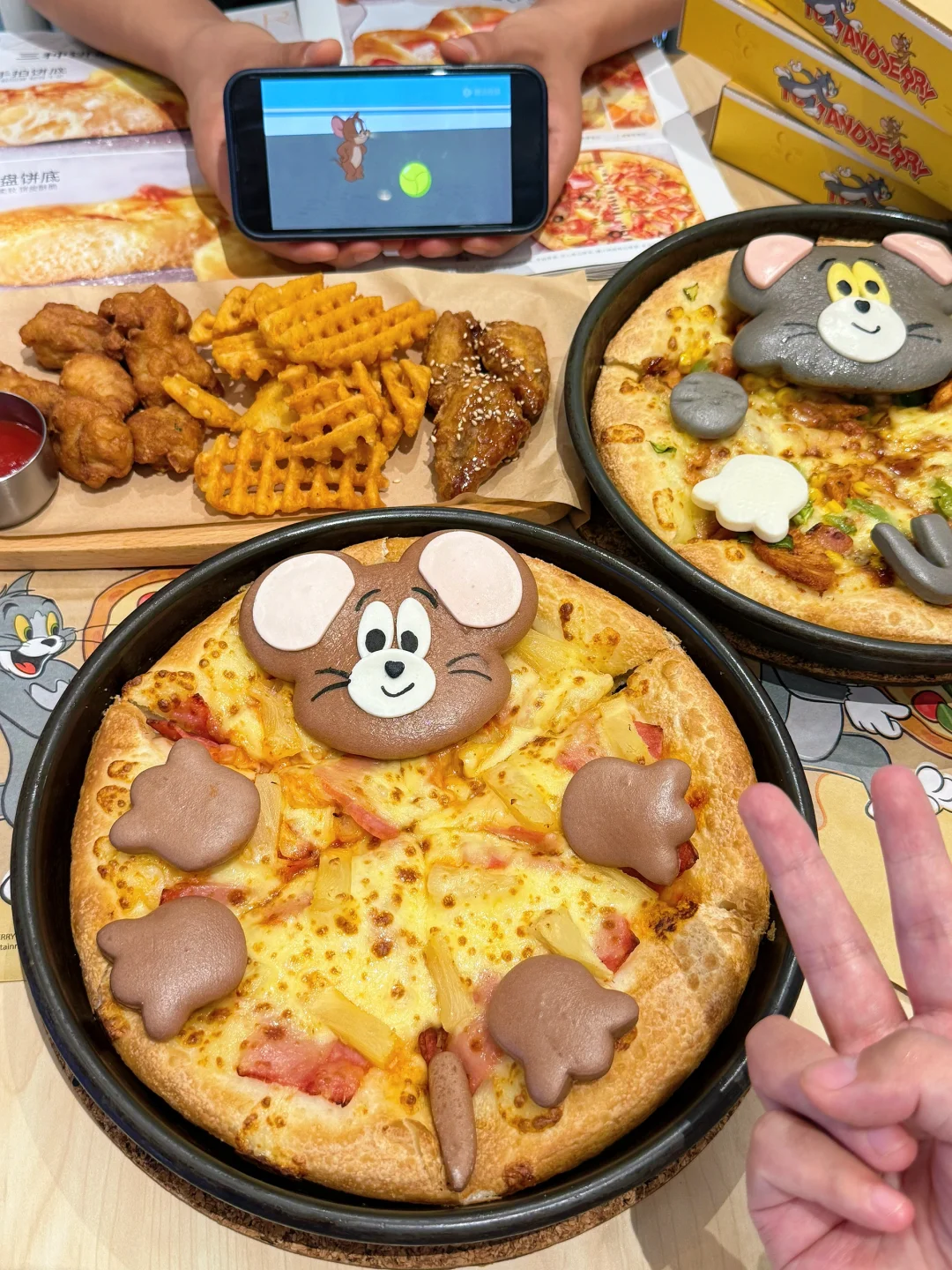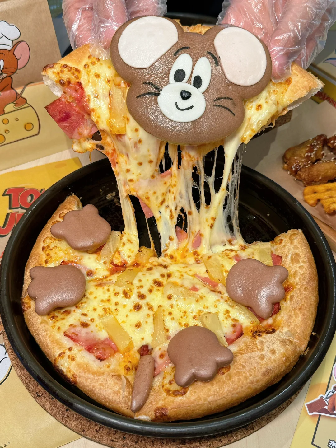 汤姆和杰瑞的造型好可爱,而且披萨里牛肉超多,搭配丰富馅料,满满的卷边~也太好吃了!谁懂这一口的含金量~